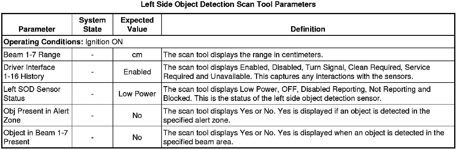 Side Object Sensor Module Scan Tool Information (Left)