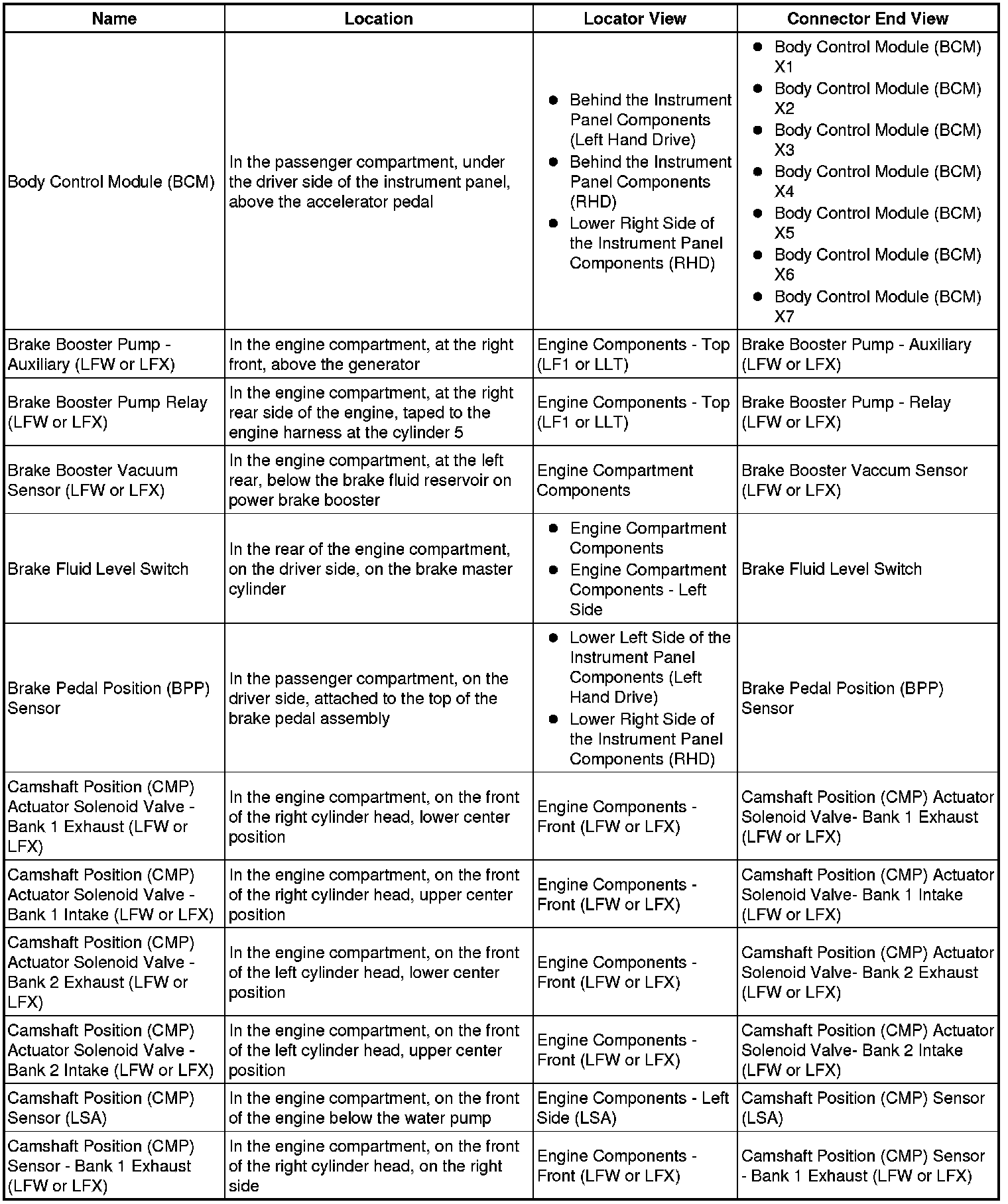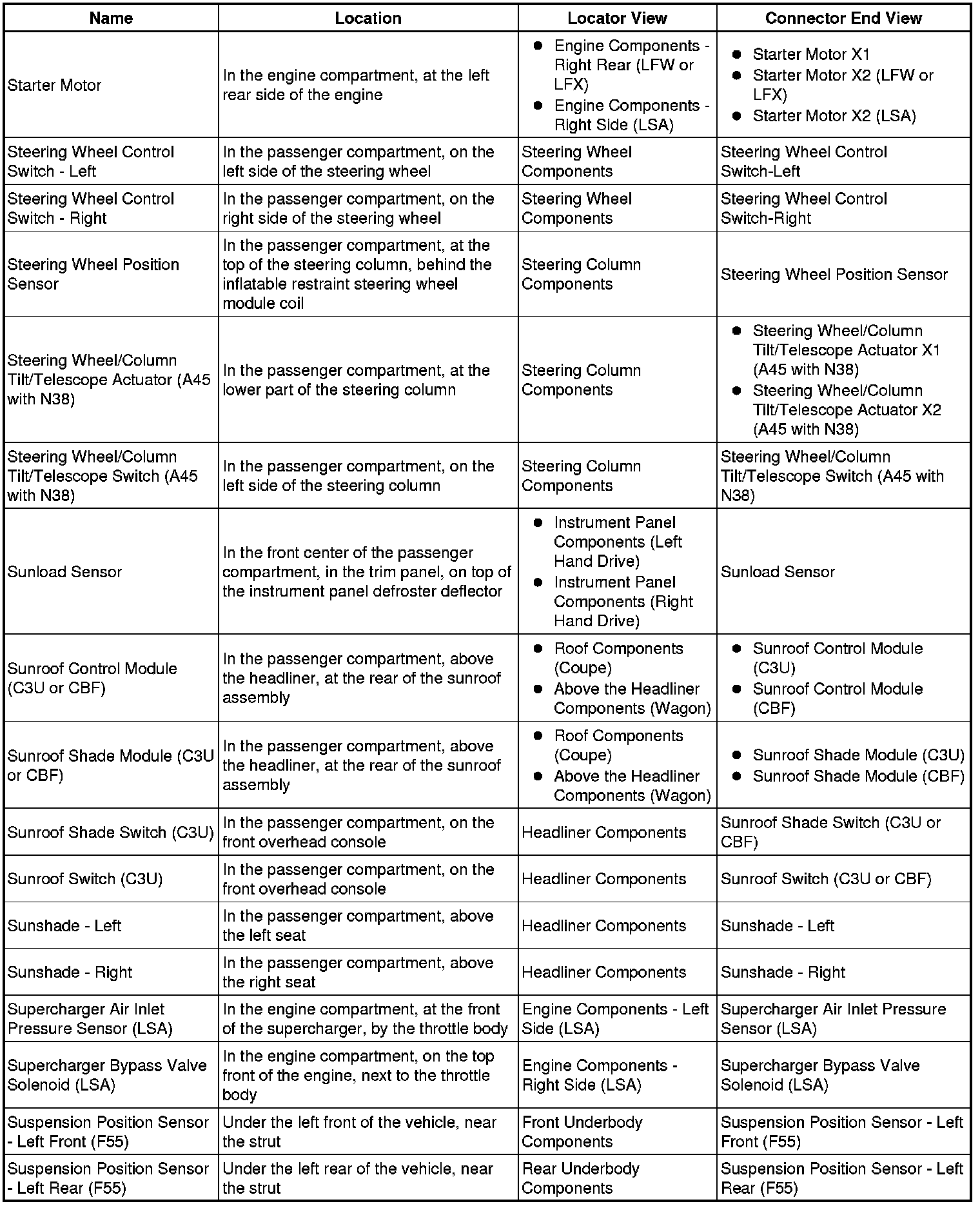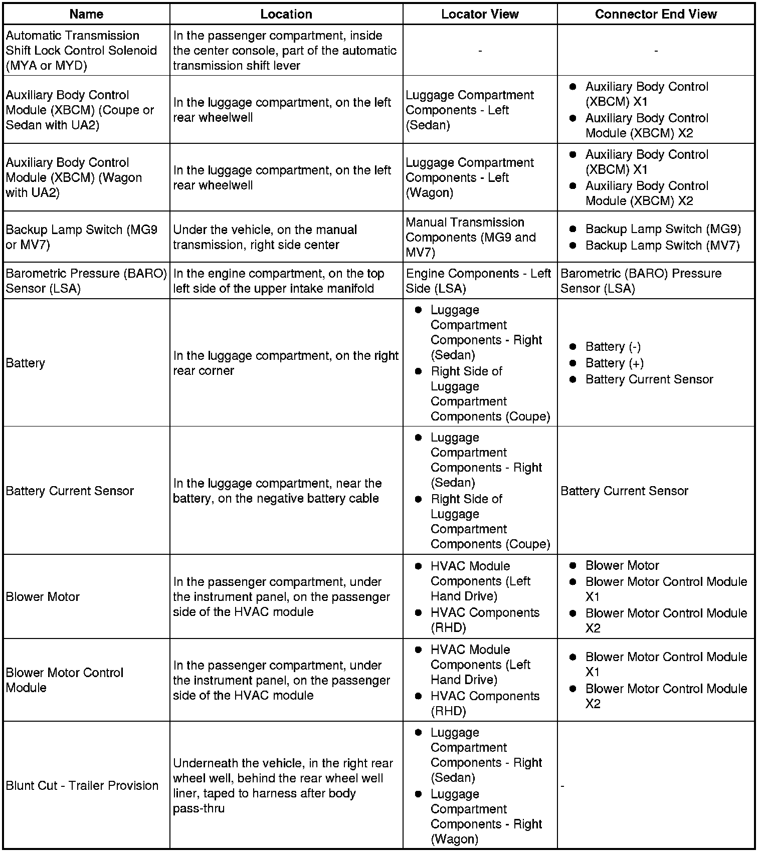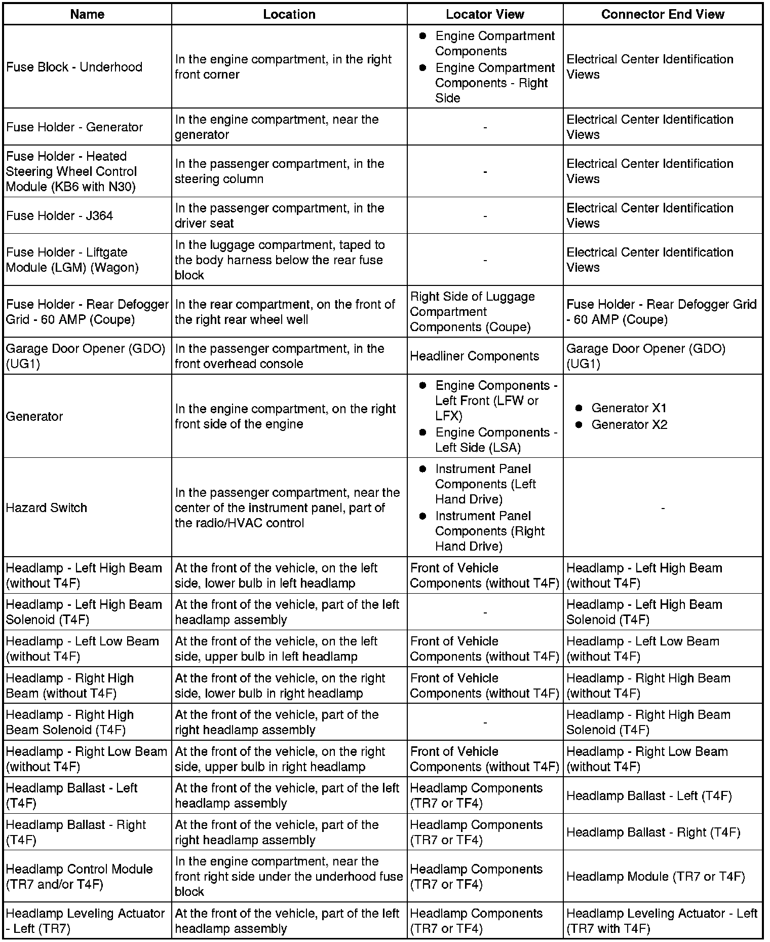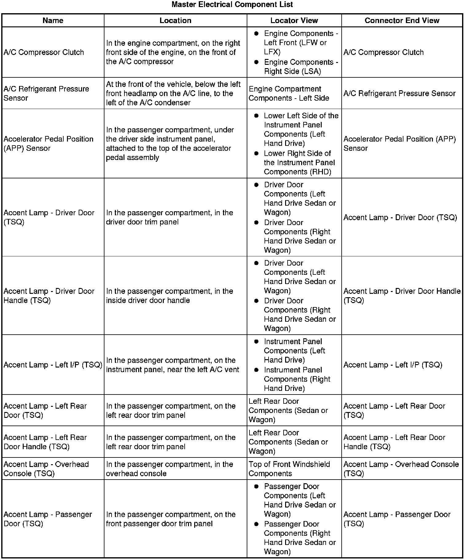 Master Electrical Component List