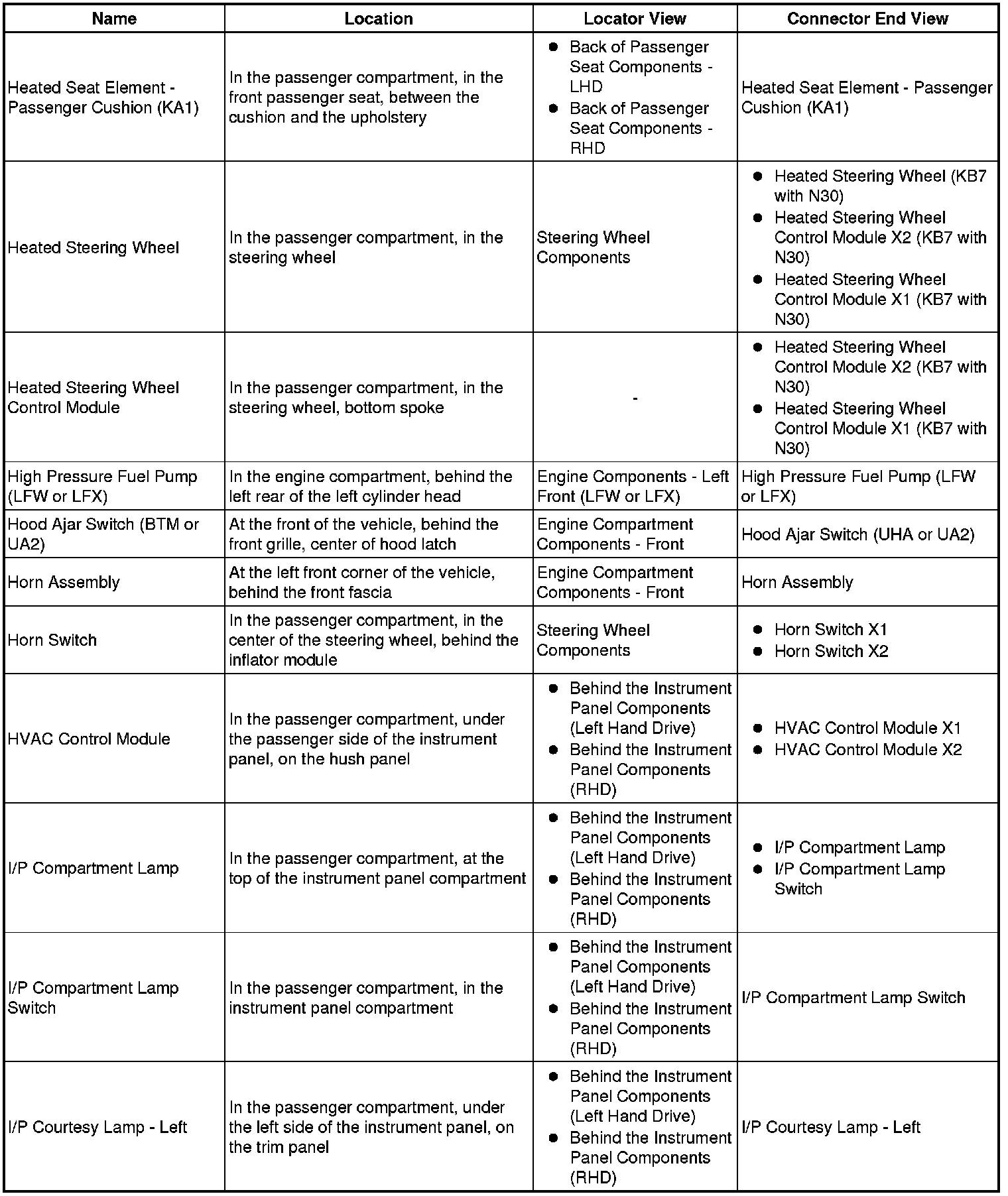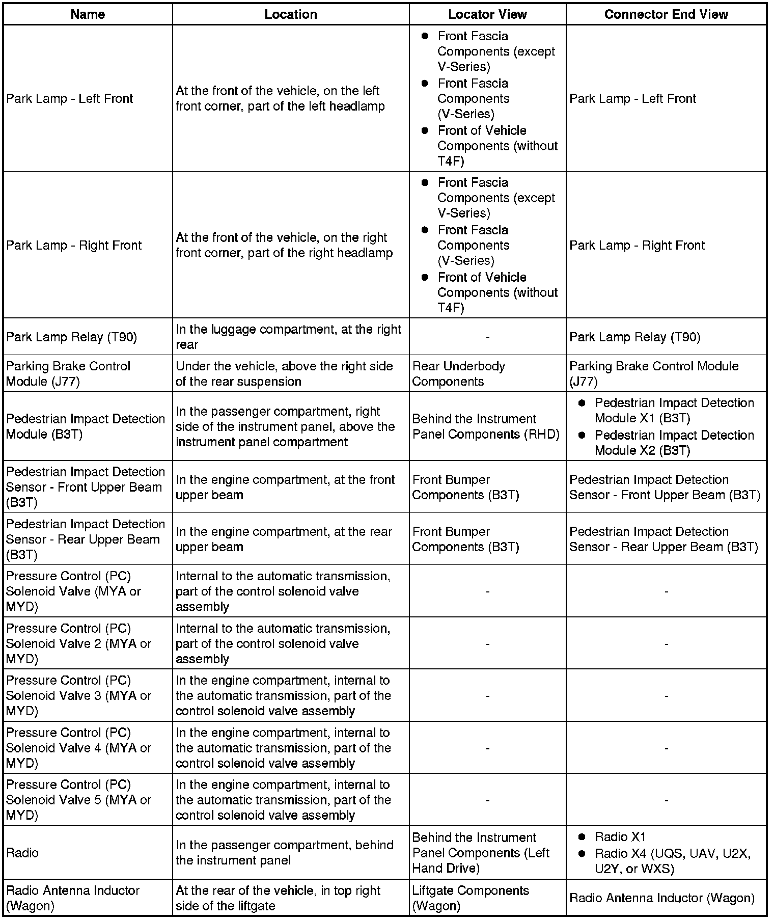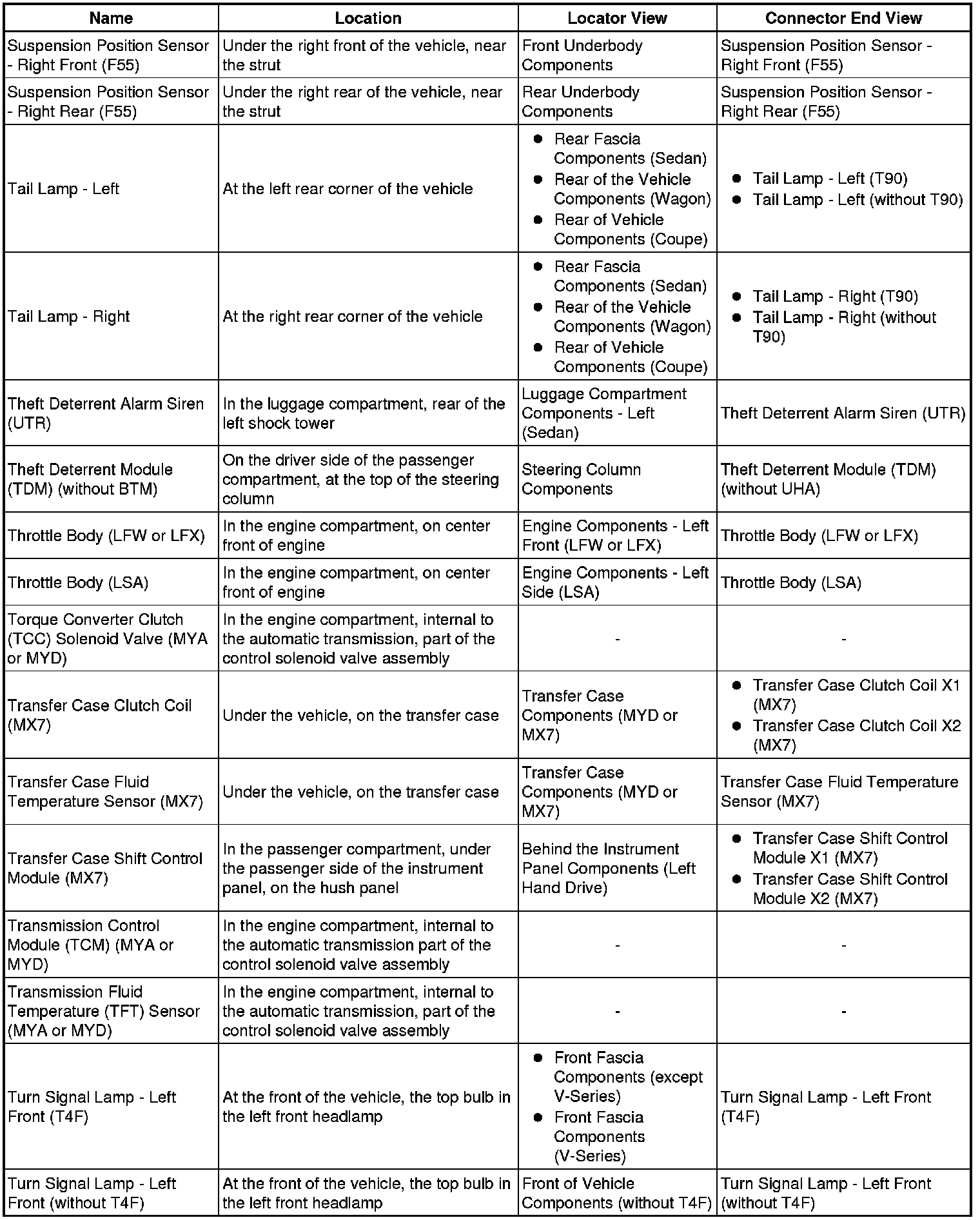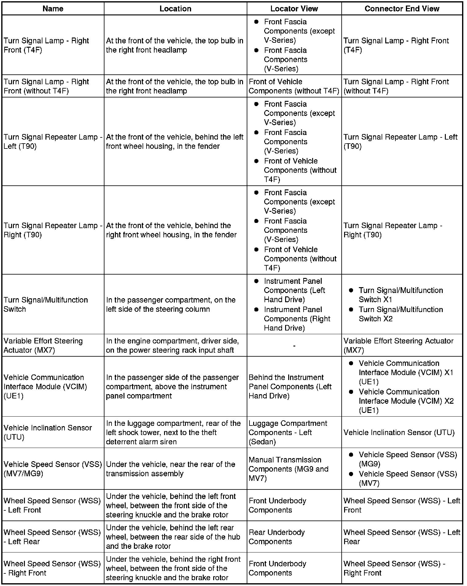 Master Electrical Component List