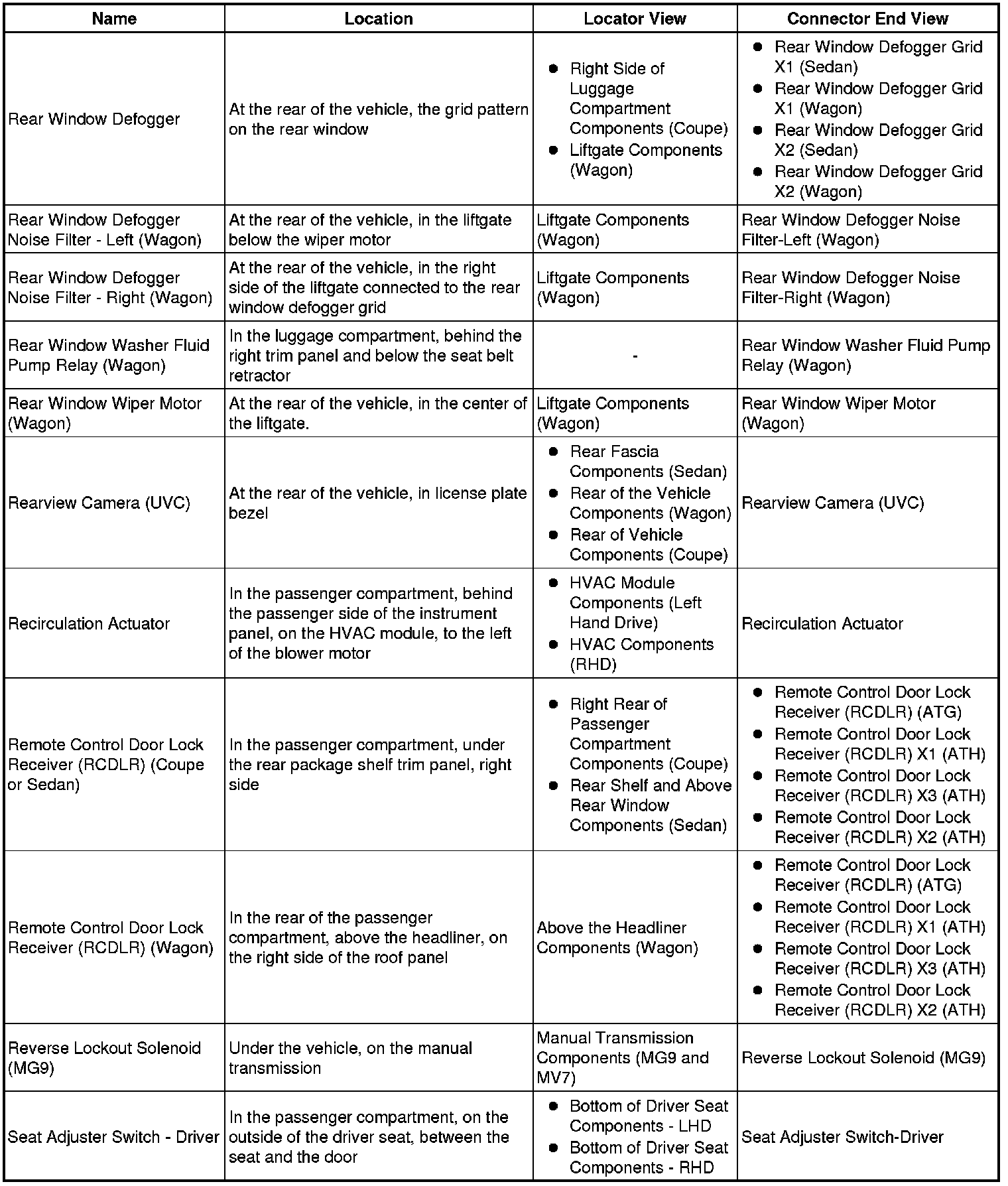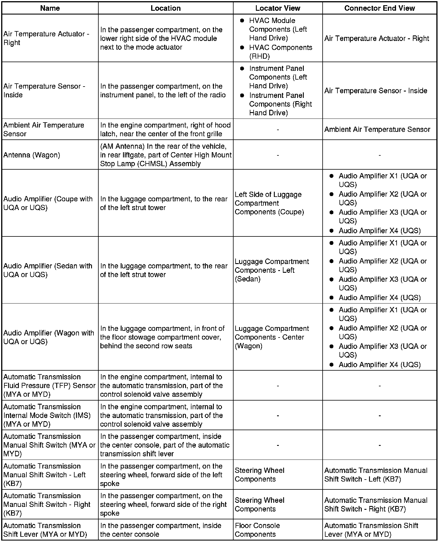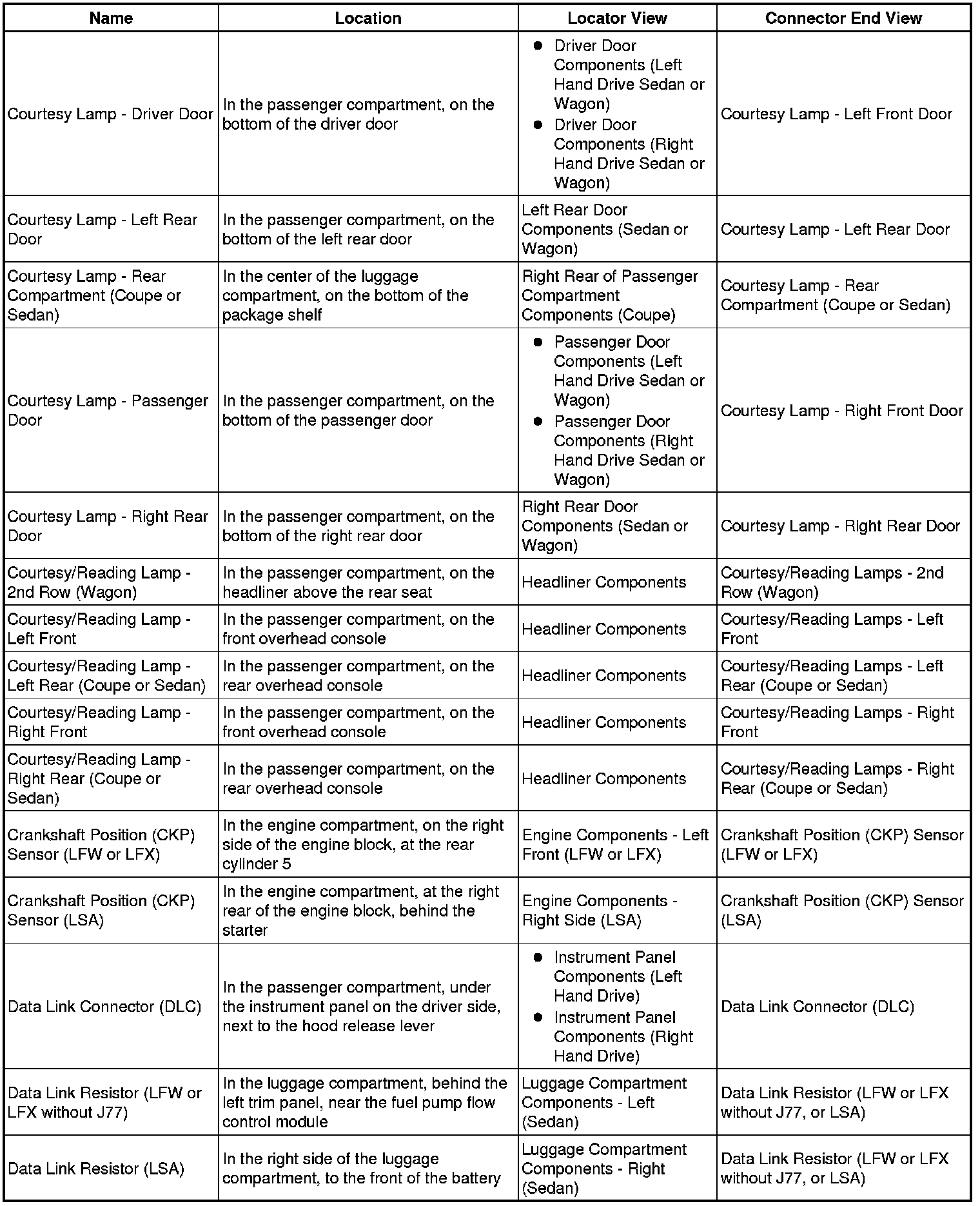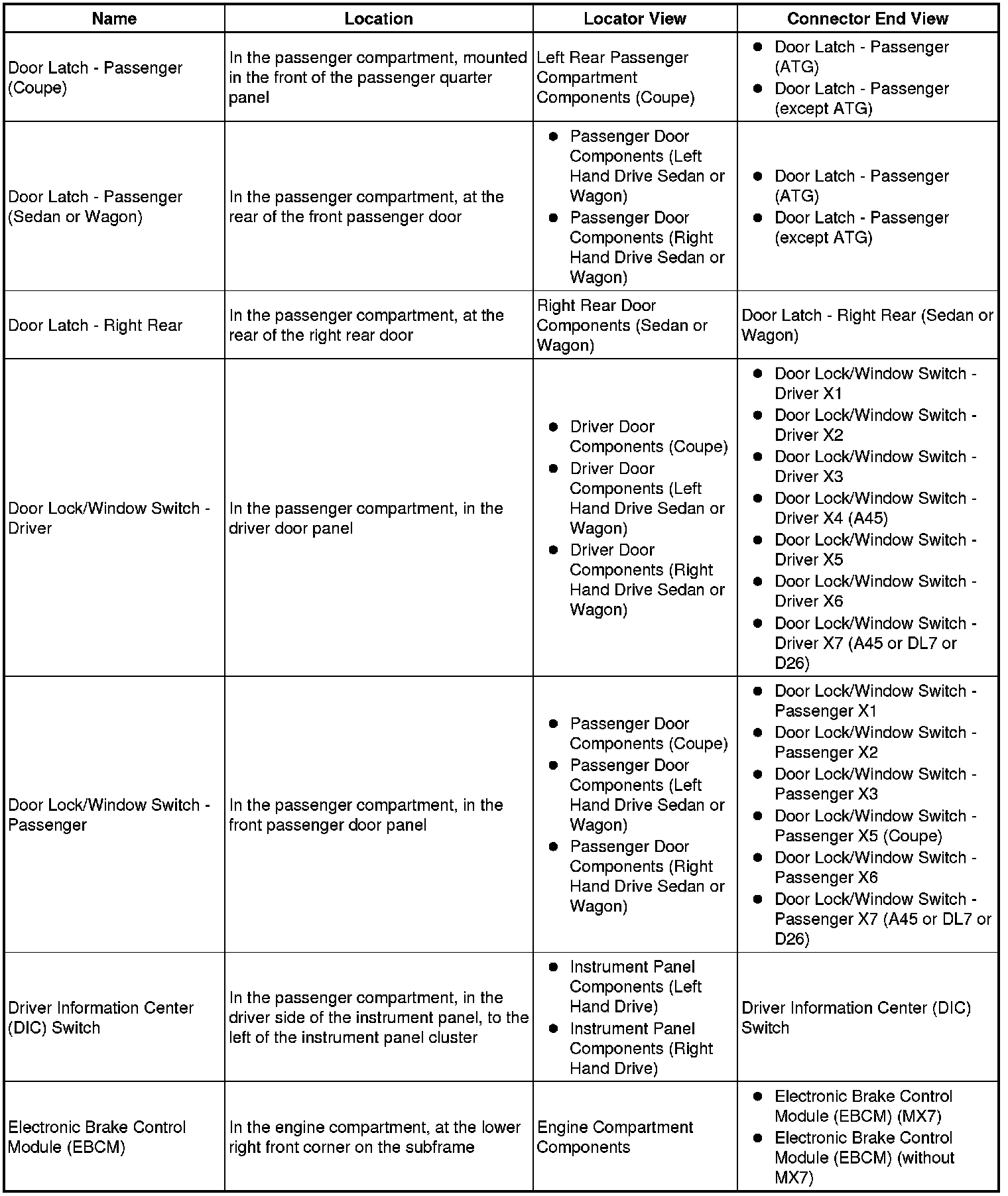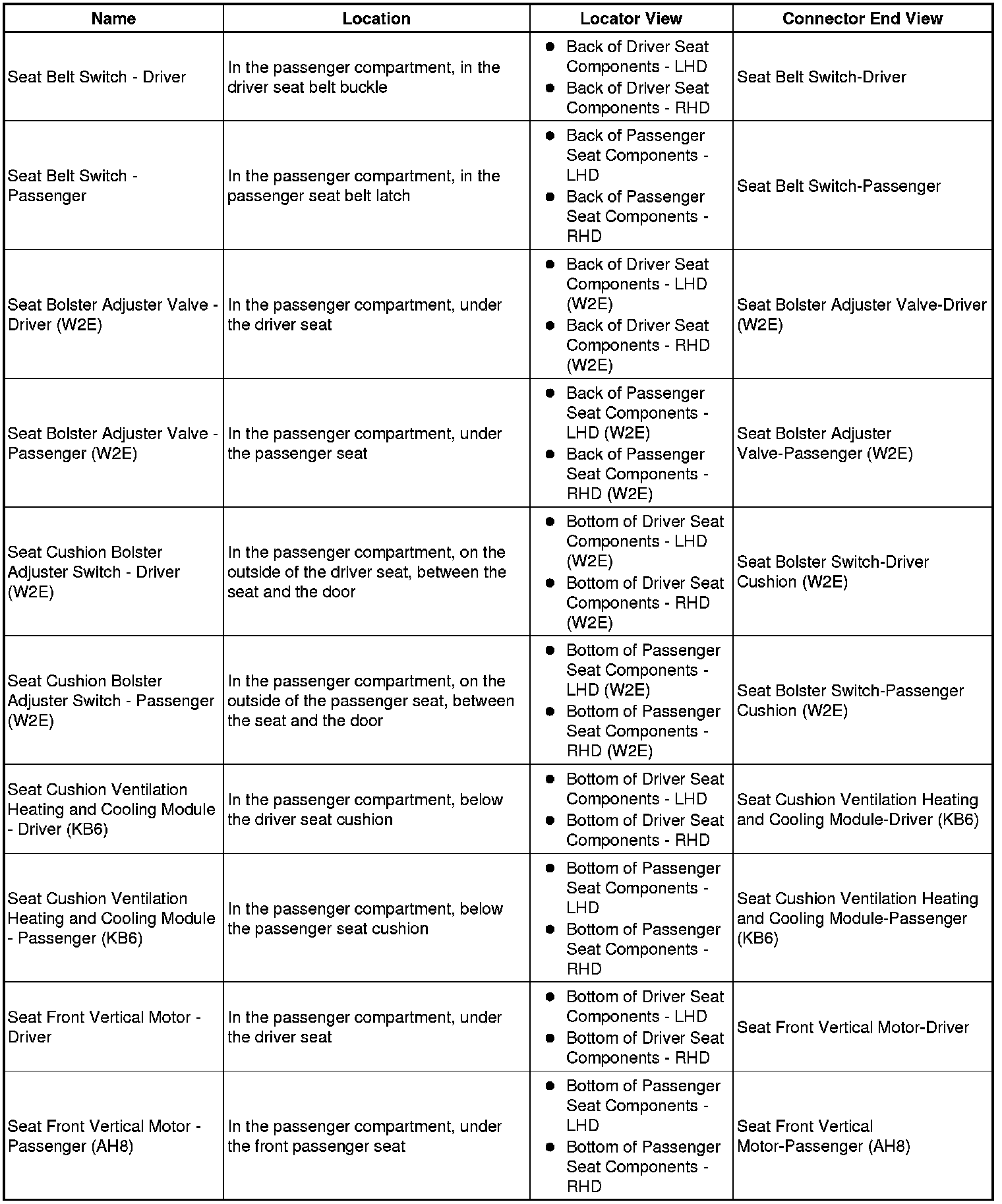 Master Electrical Component List