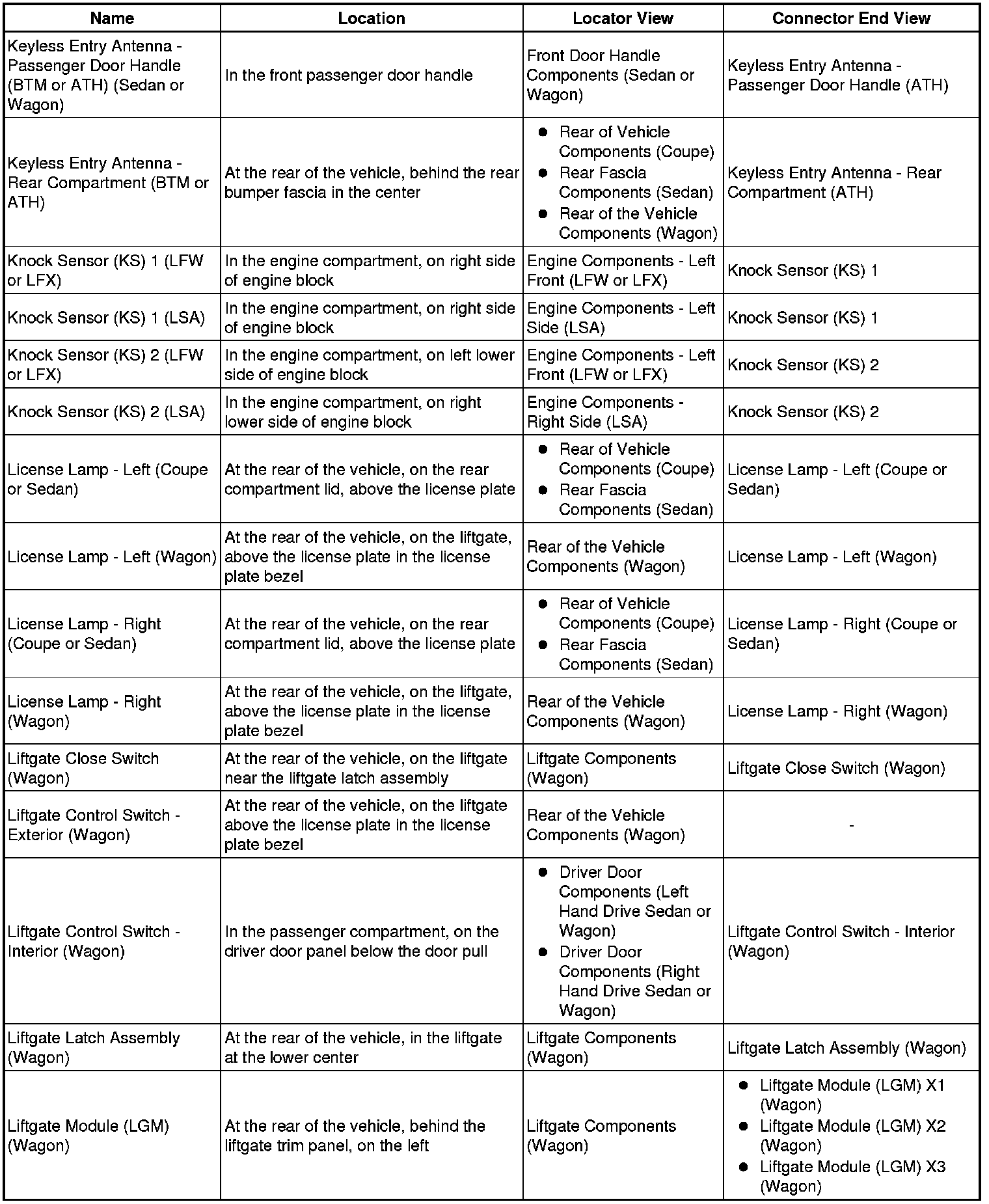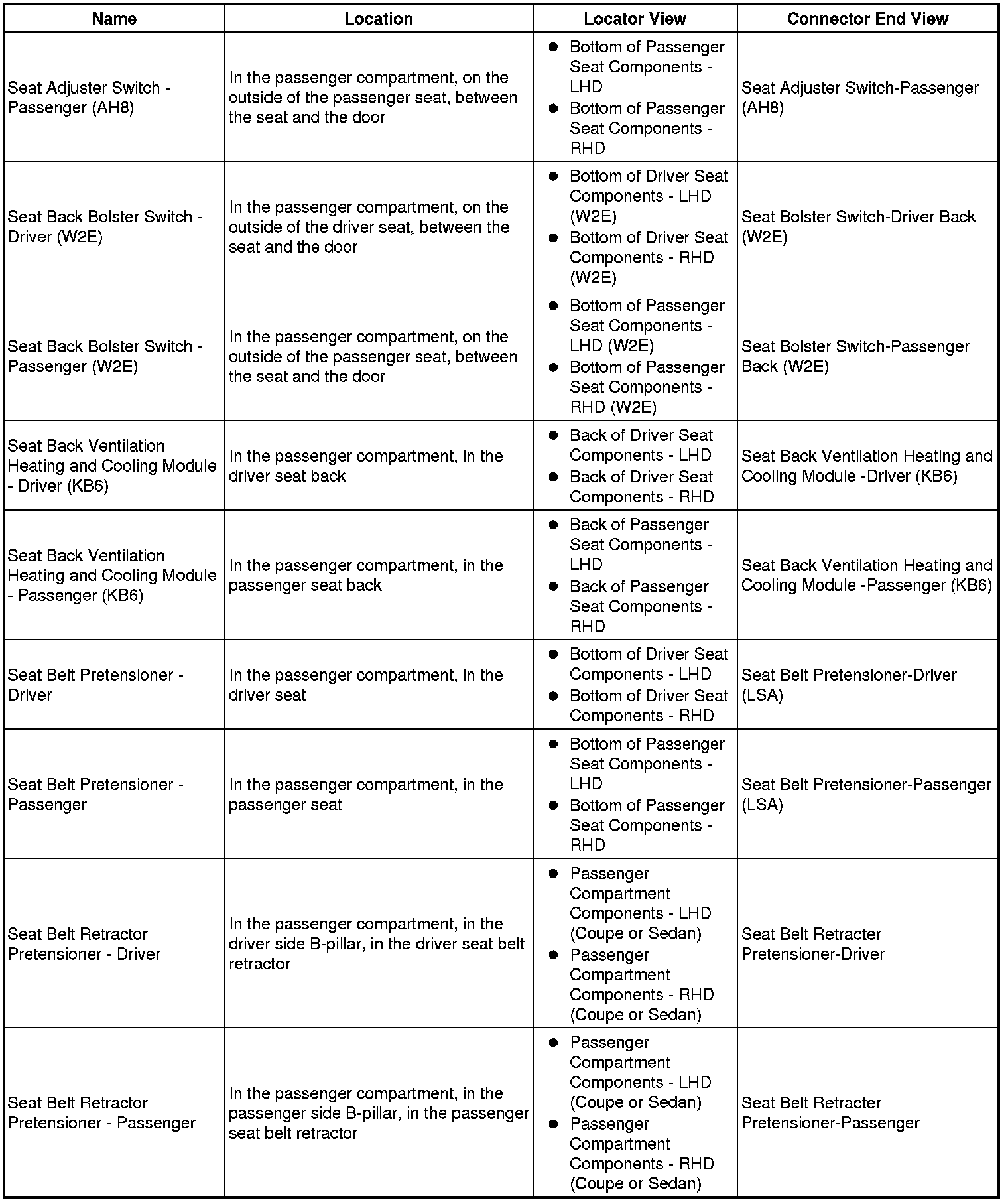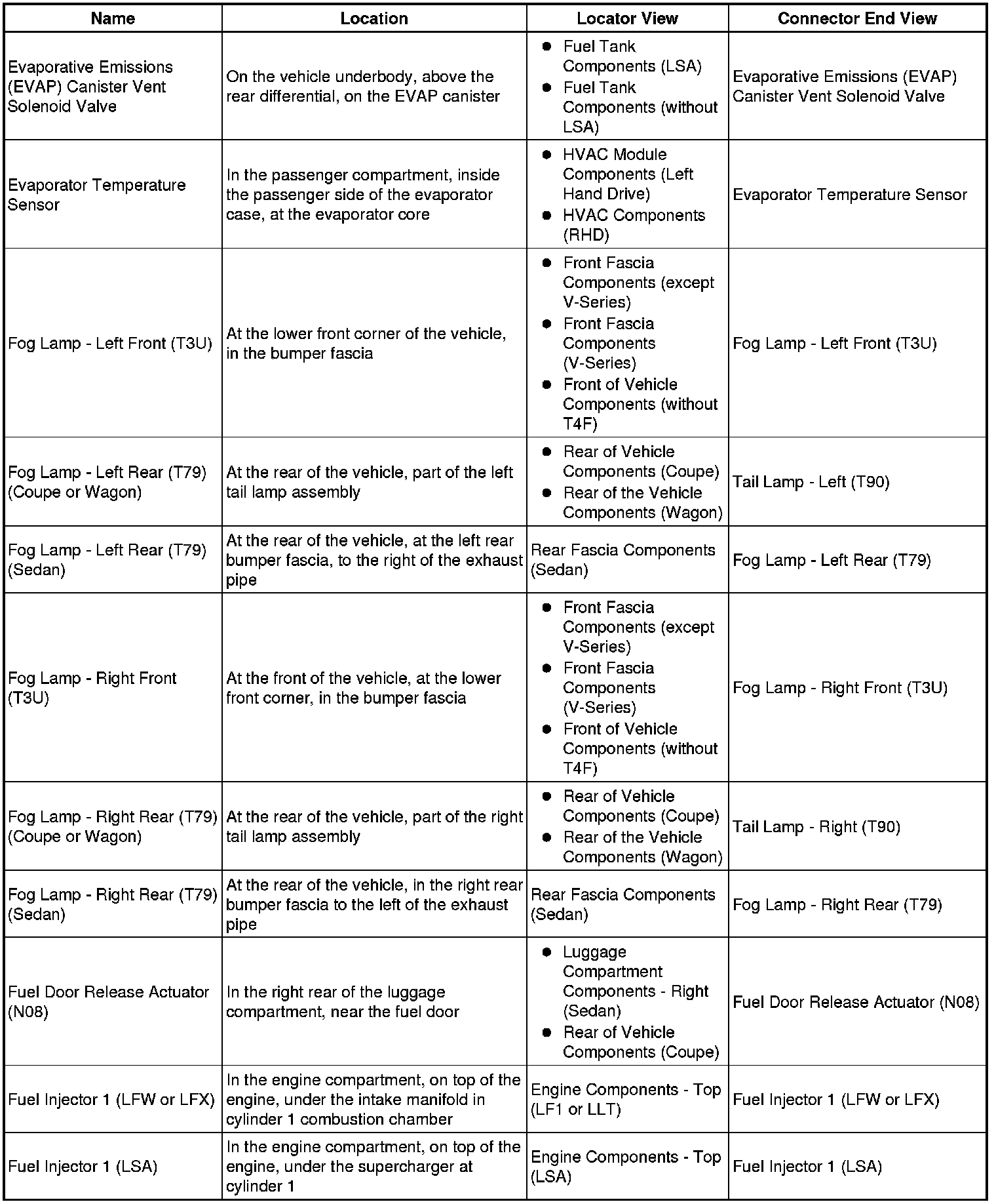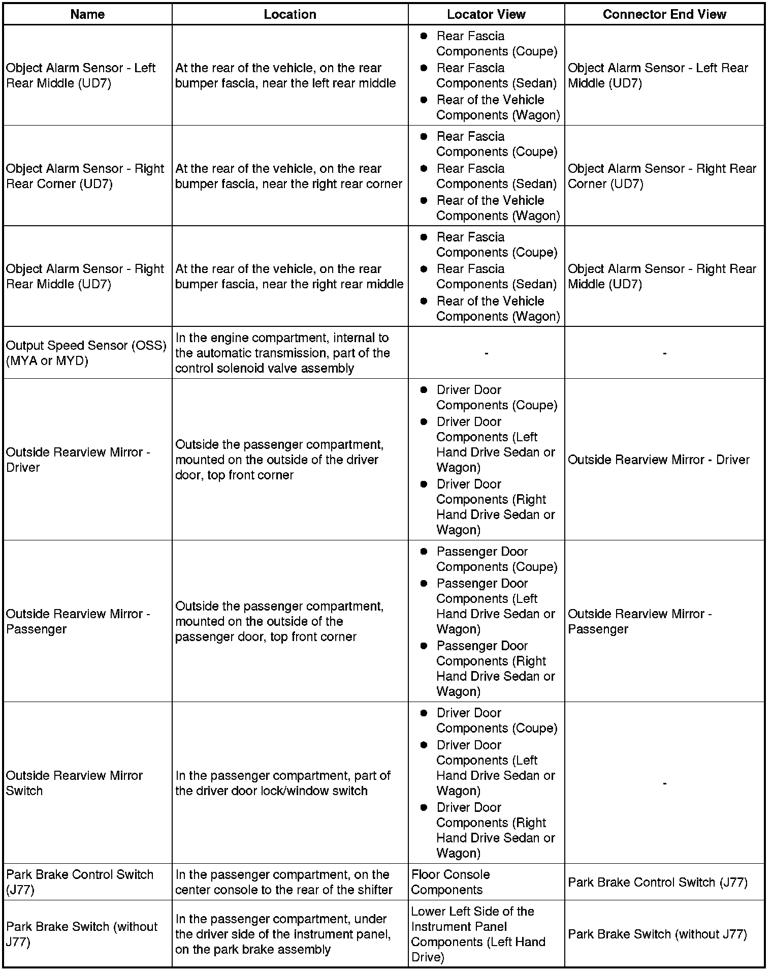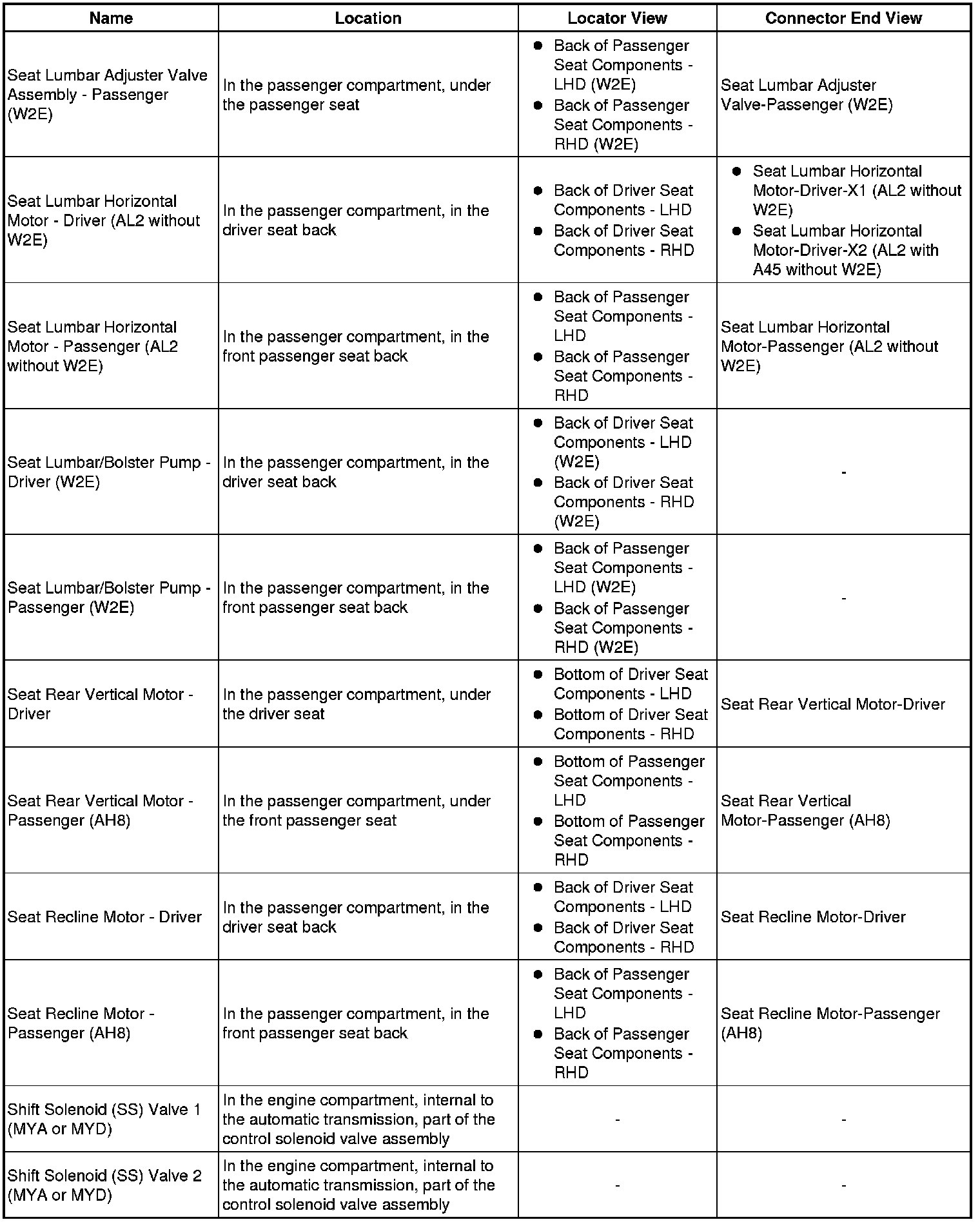 Master Electrical Component List