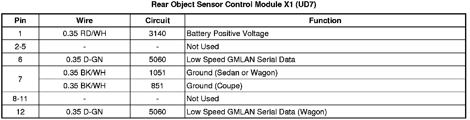 Rear Object Sensor Control Module X1 (UD7)
