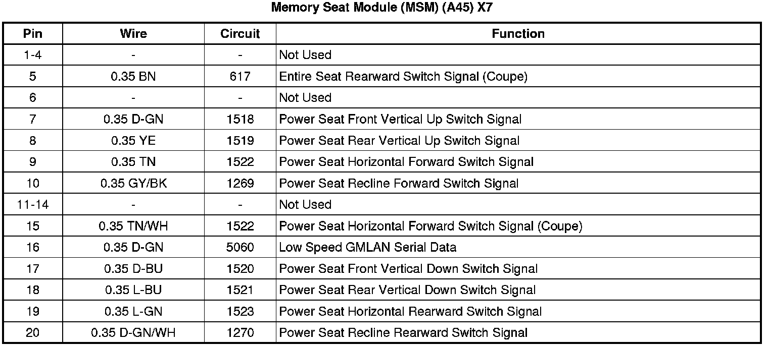 Memory Seat Module (MSM) (A45) X7