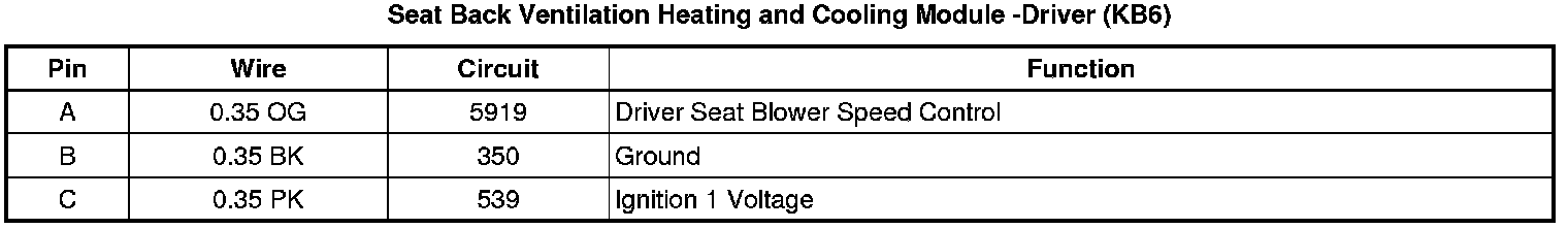 Seat Back Ventilation Heating and Cooling Module -Driver (KB6)