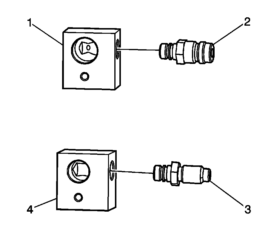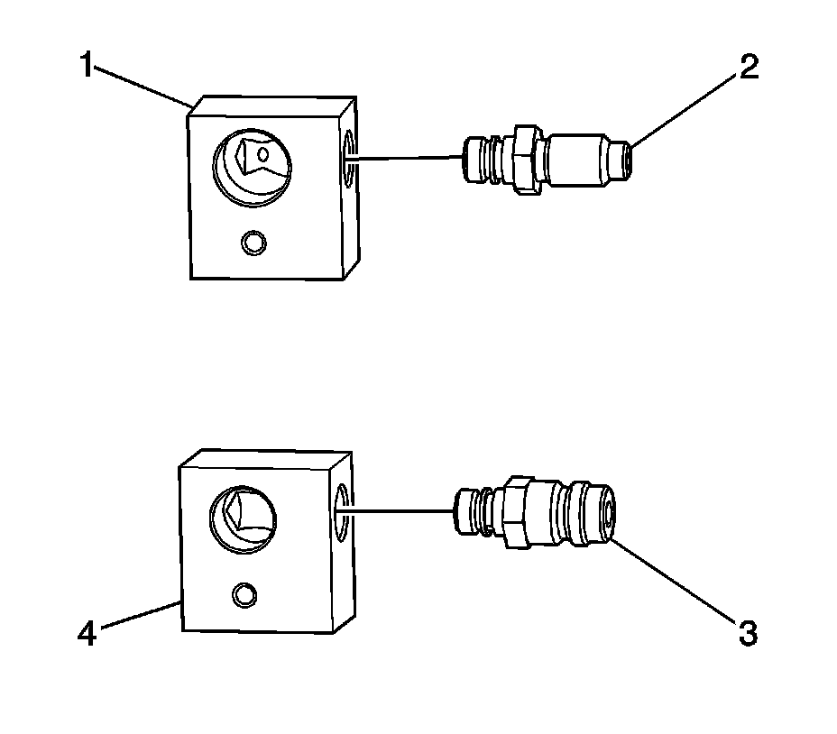 2. Install the J 45268-8 (3) onto the discharge line adapter block J 45268-12 (4).