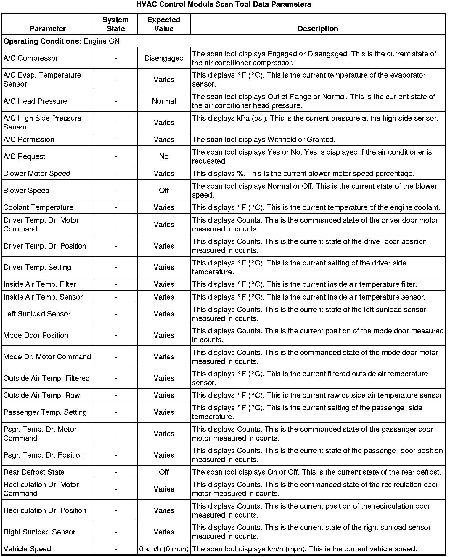 Heating, Ventilation and Air Conditioning Control Module Scan Tool Information