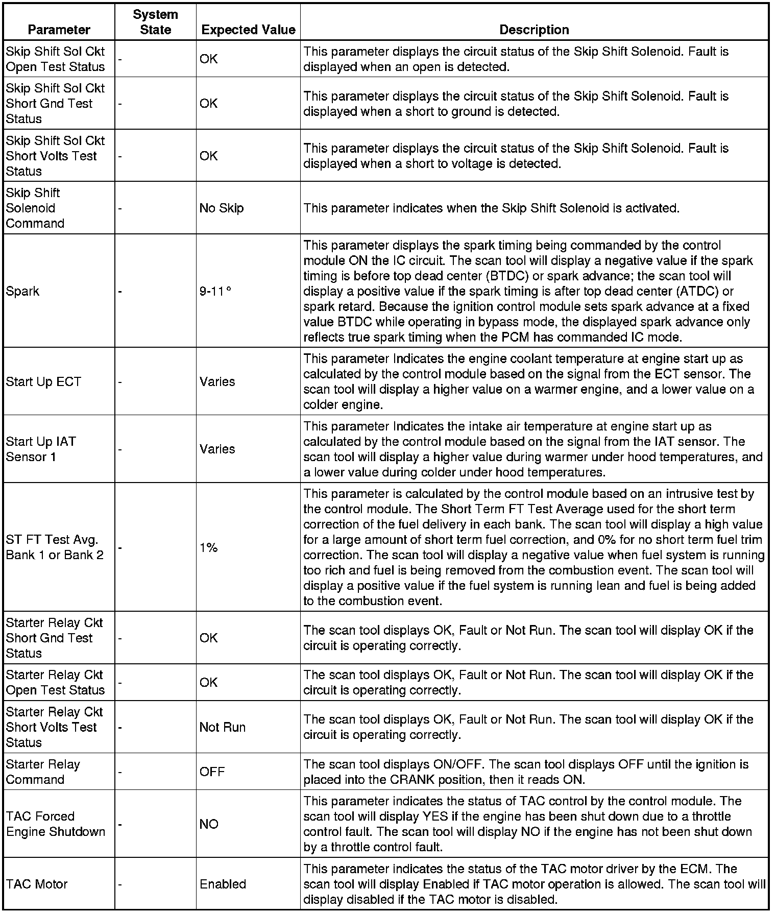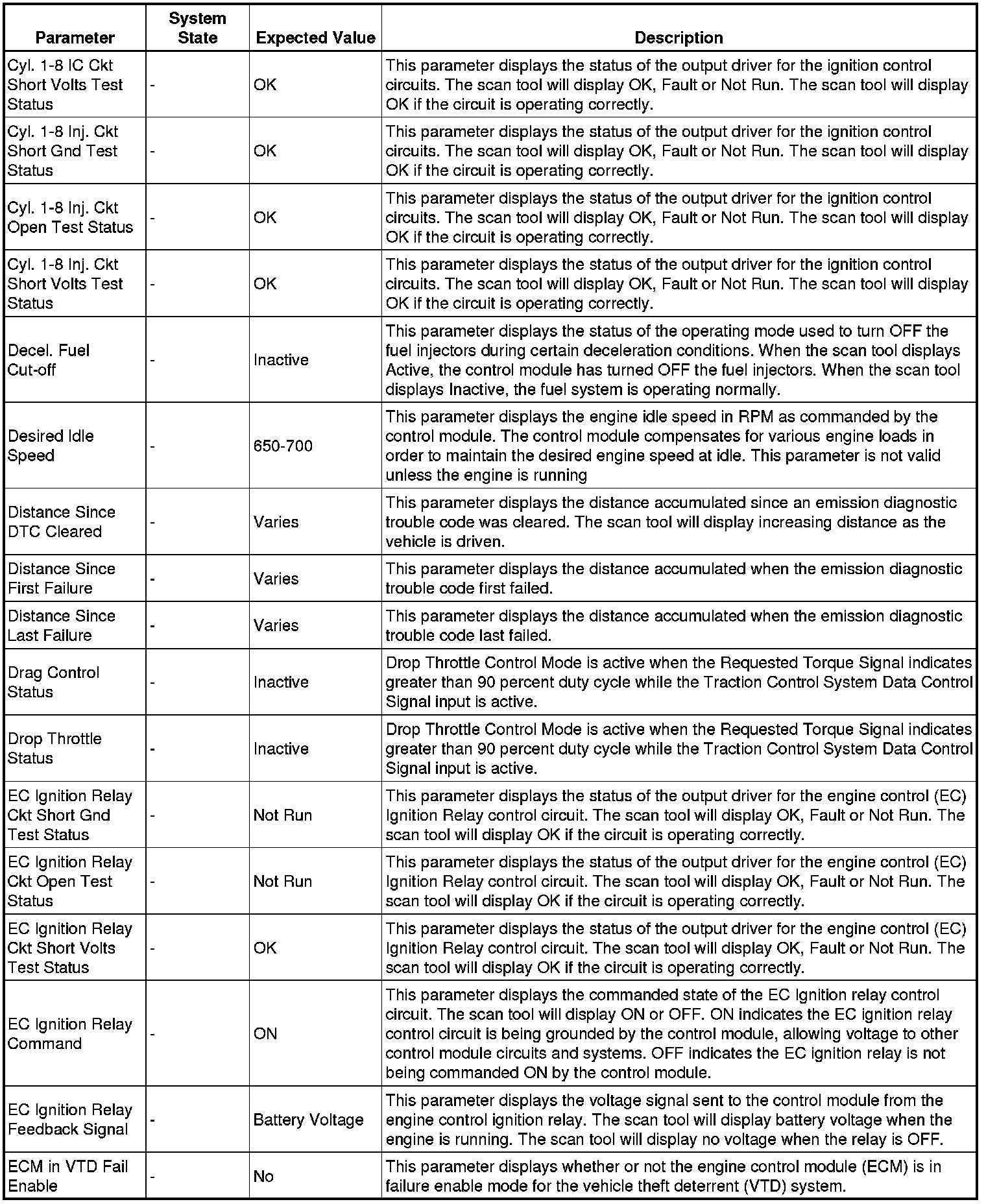 The scan tool values from a properly running engine may be used for comparison with the engine you are diagnosing. The engine scan tool data list represents values that would be seen on a normally running engine.