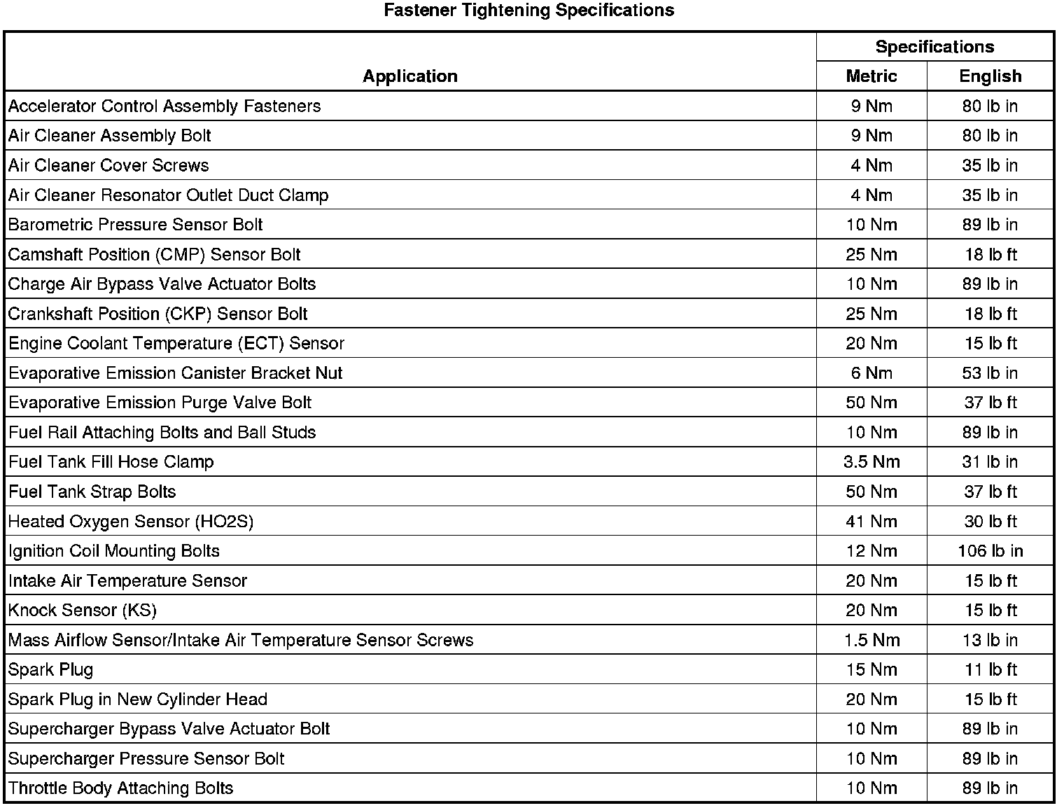 Fastener Tightening Specifications