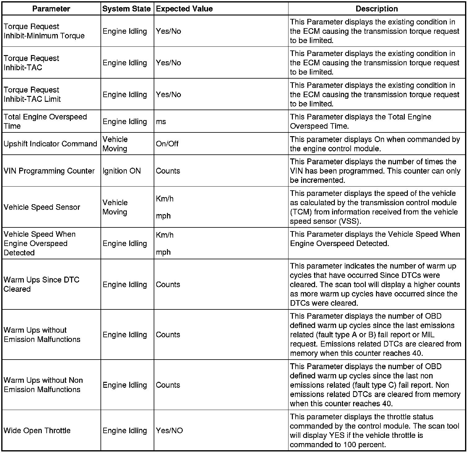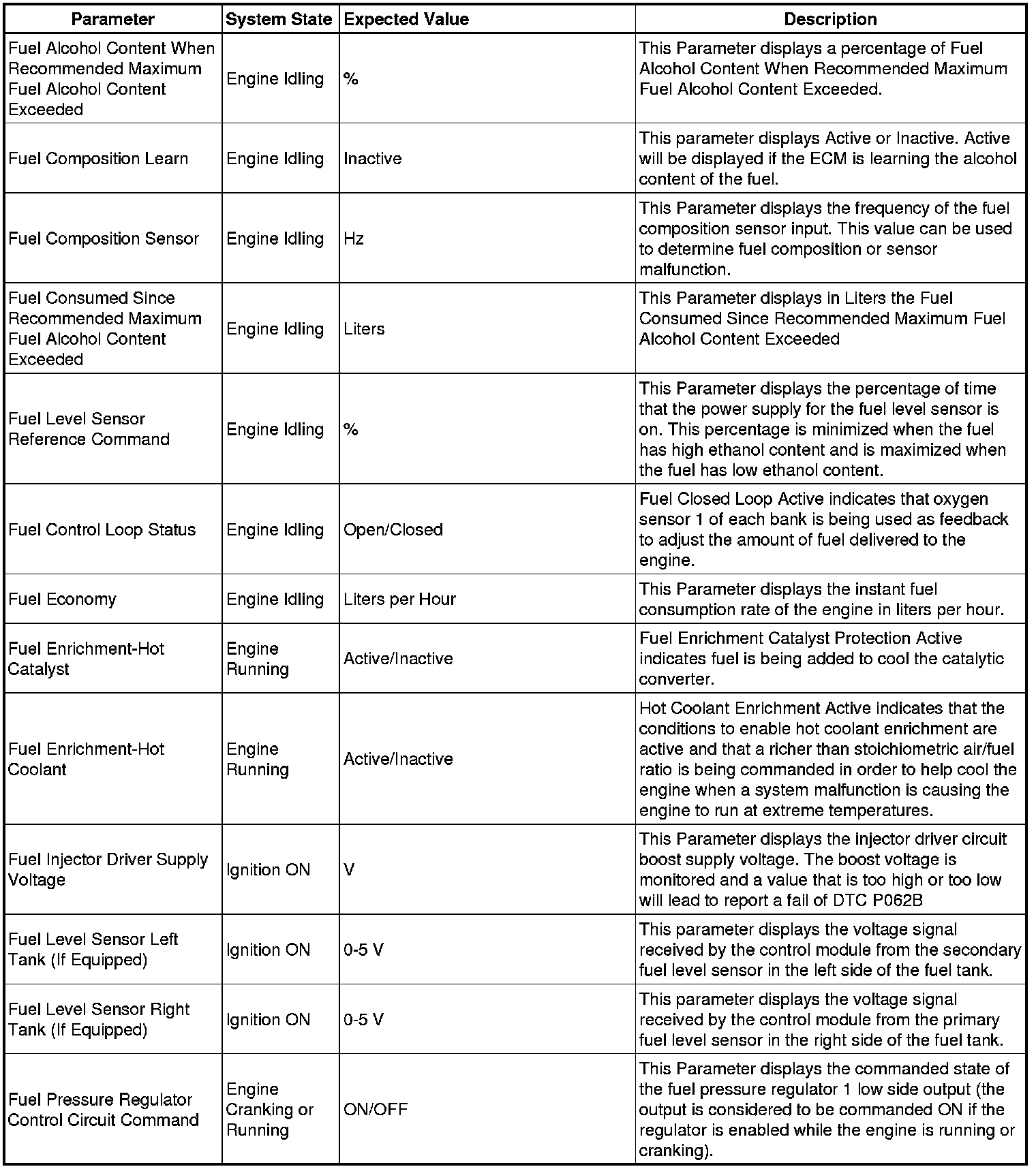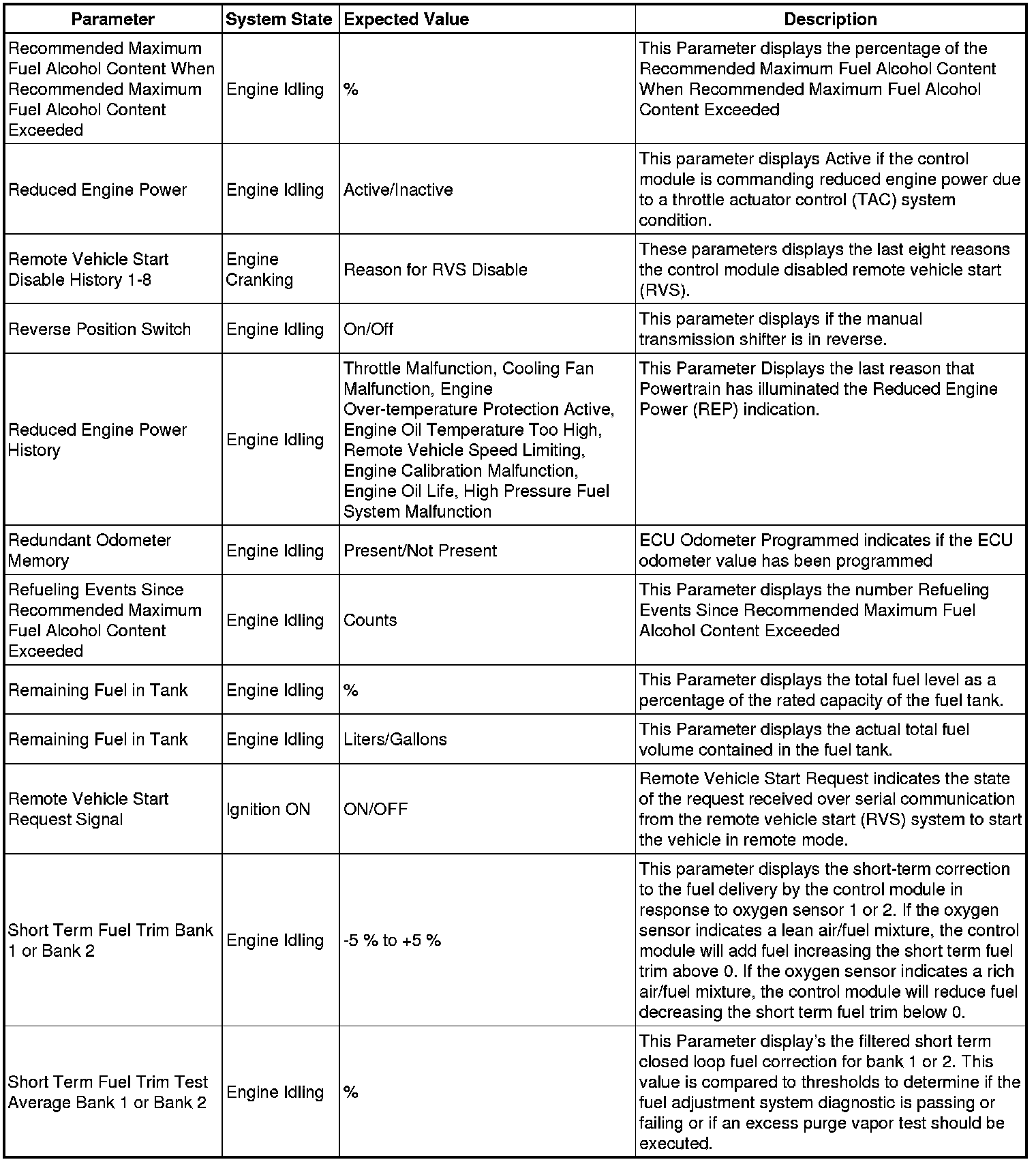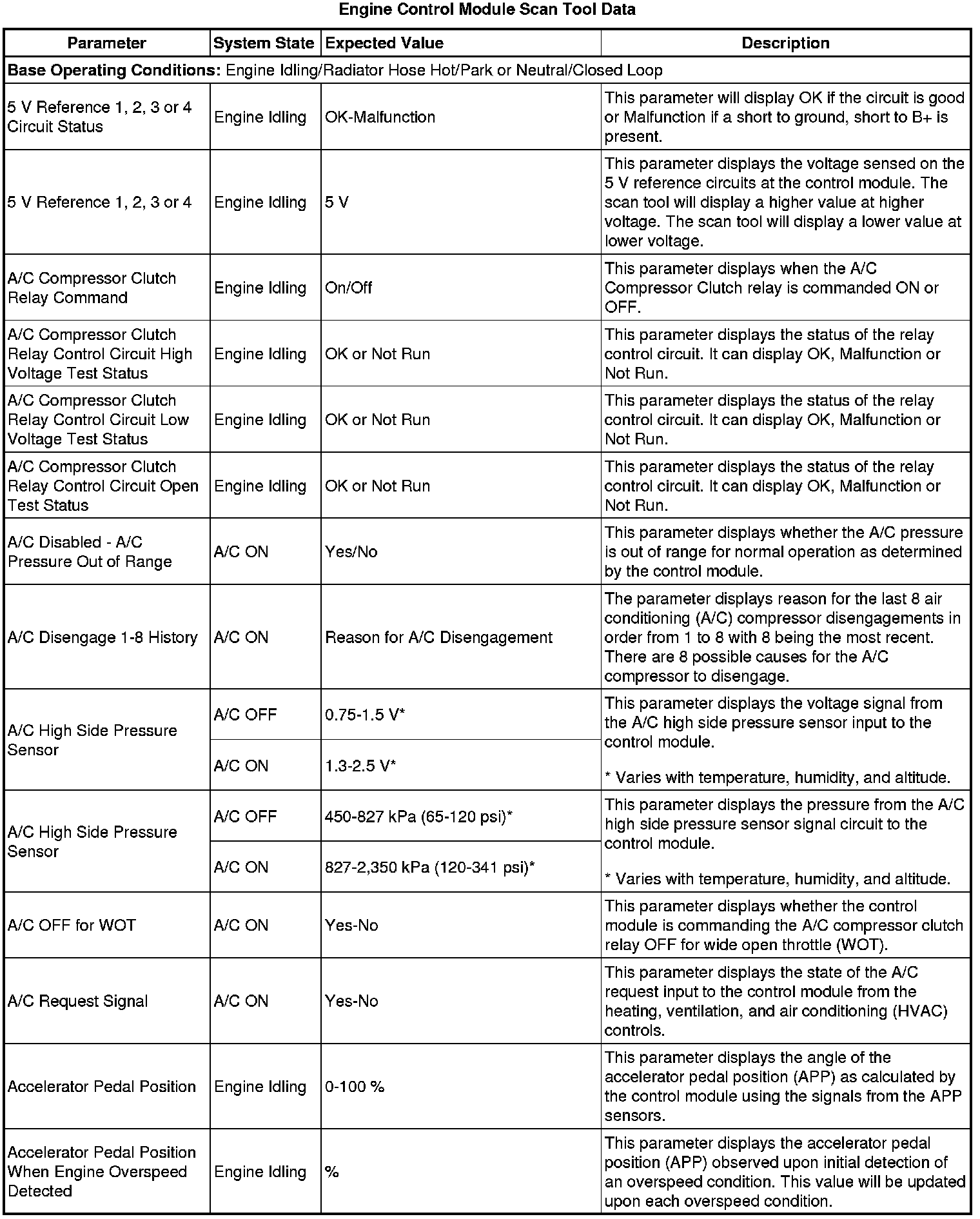 The Engine Control Module Scan Tool Data List contains all engine-related parameters that are available on the scan tool. The list is arranged in alphabetical order. A given parameter may appear in any one of the data lists, and in some cases may appear more than once, or in more than one data list in order to group certain related parameters together.