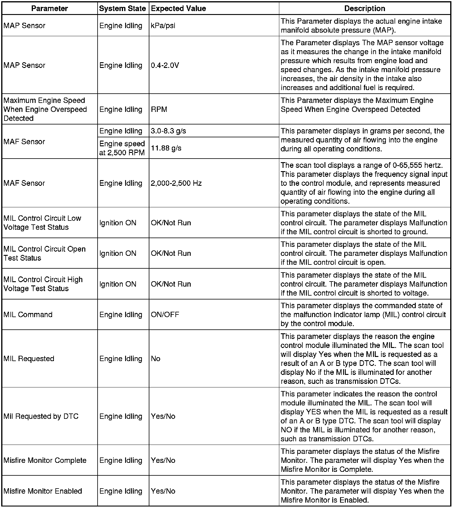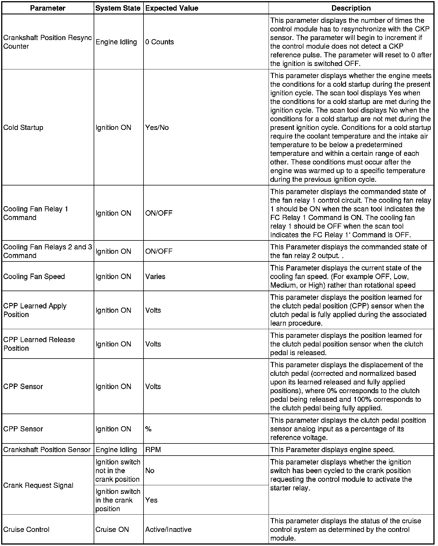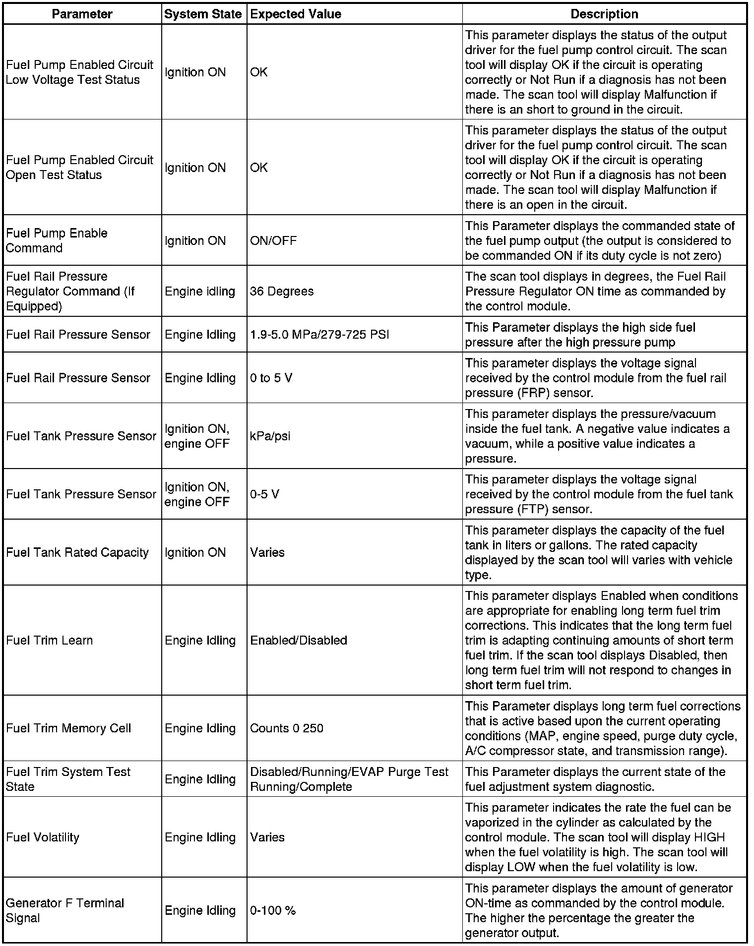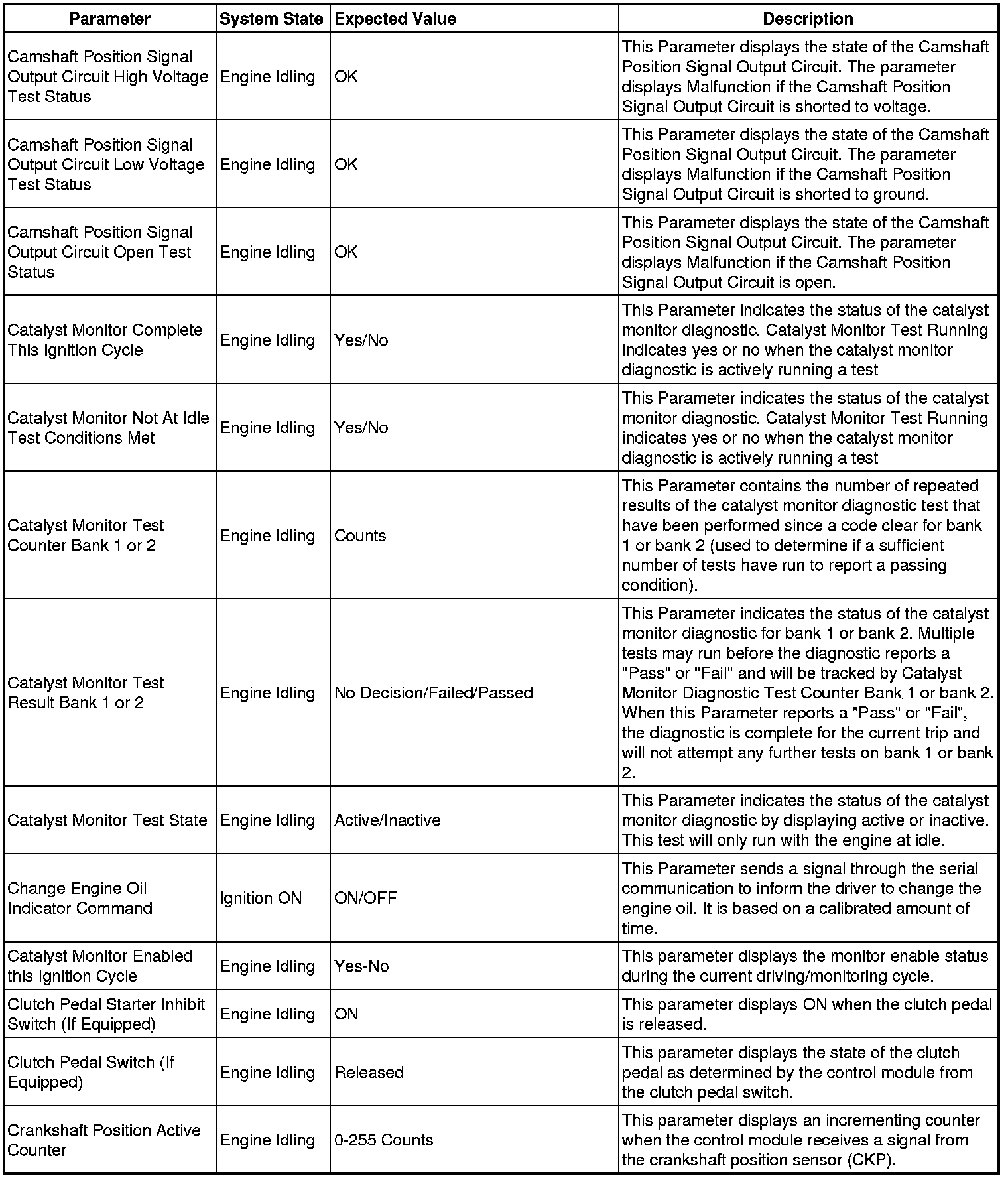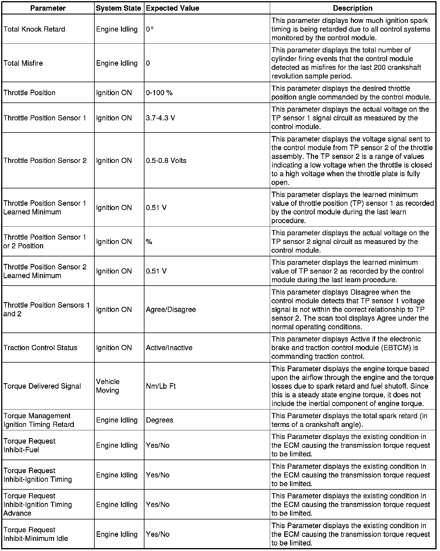 The Engine Control Module Scan Tool Data List contains all engine-related parameters that are available on the scan tool. The list is arranged in alphabetical order. A given parameter may appear in any one of the data lists, and in some cases may appear more than once, or in more than one data list in order to group certain related parameters together.