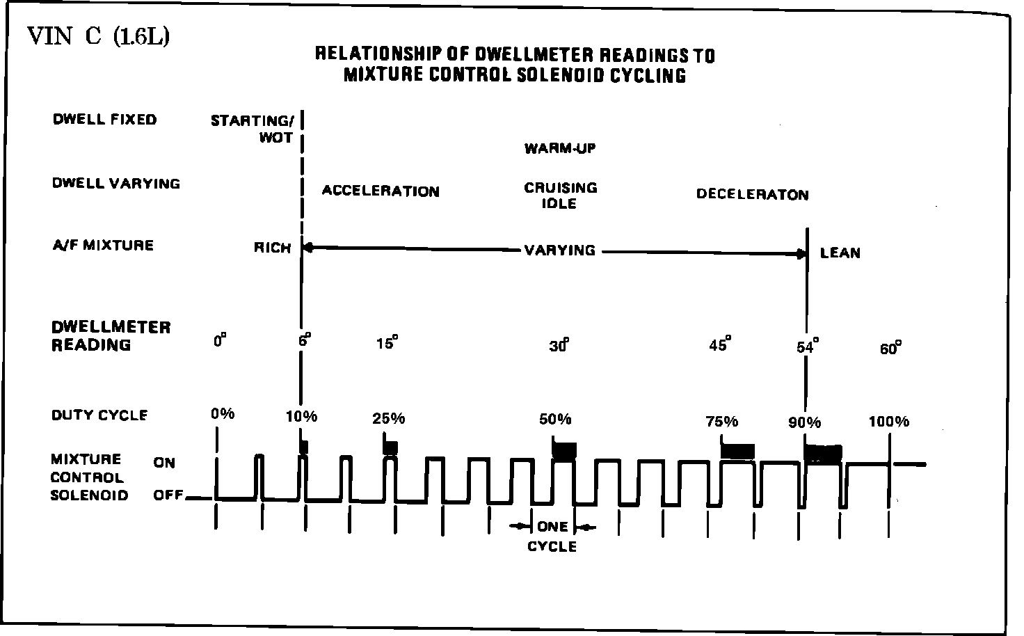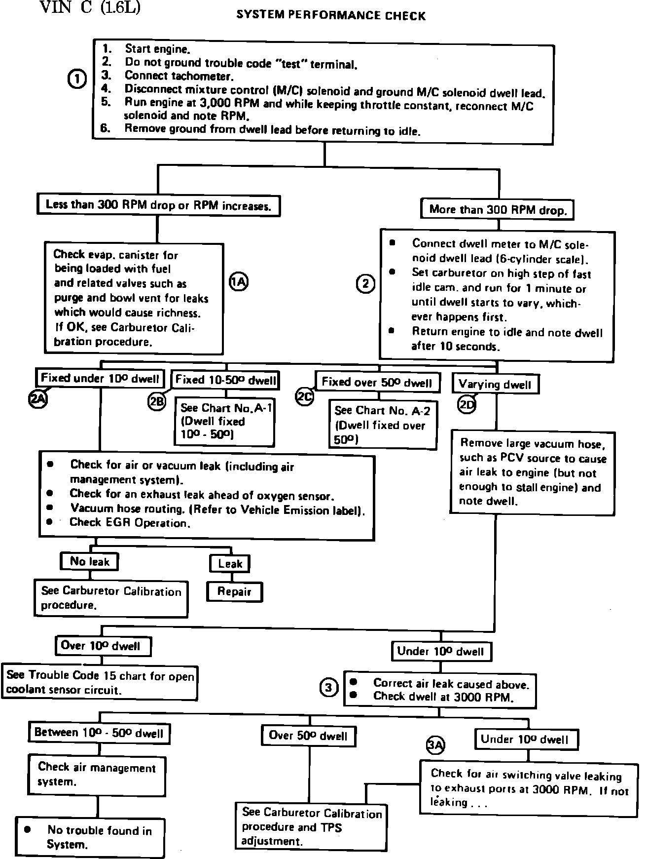 1. Checks for ability of carburetor main metering system to change the Air/Fuel mixture. Disconnecting M/C solenoid makes carburetor operate full-rich and reconnecting it with the dwell lead grounded makes it operate full-lean.