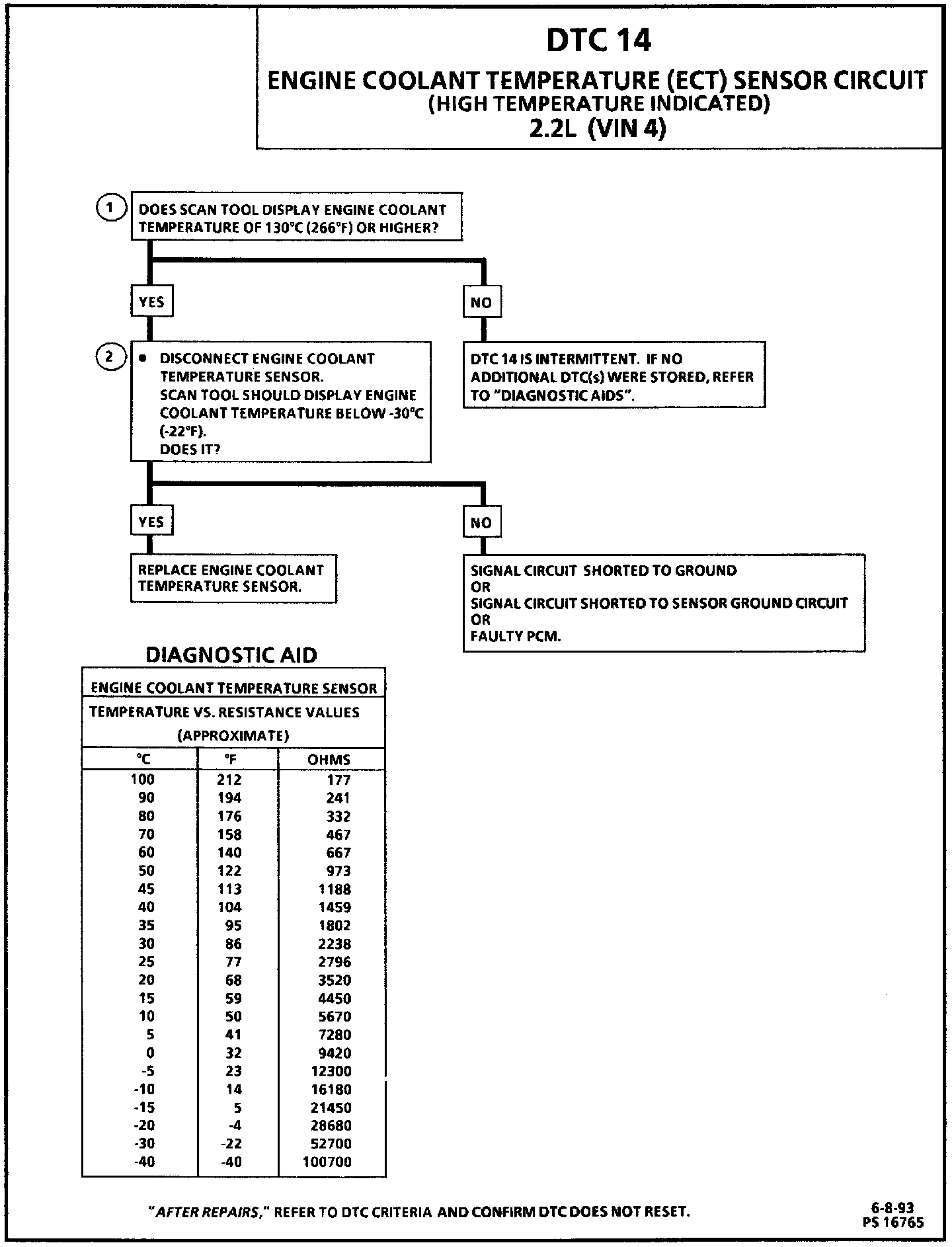 DTC 14 - Engine Coolant Temperature (ECT) Sensor Circuit (High Temperature Indicated):