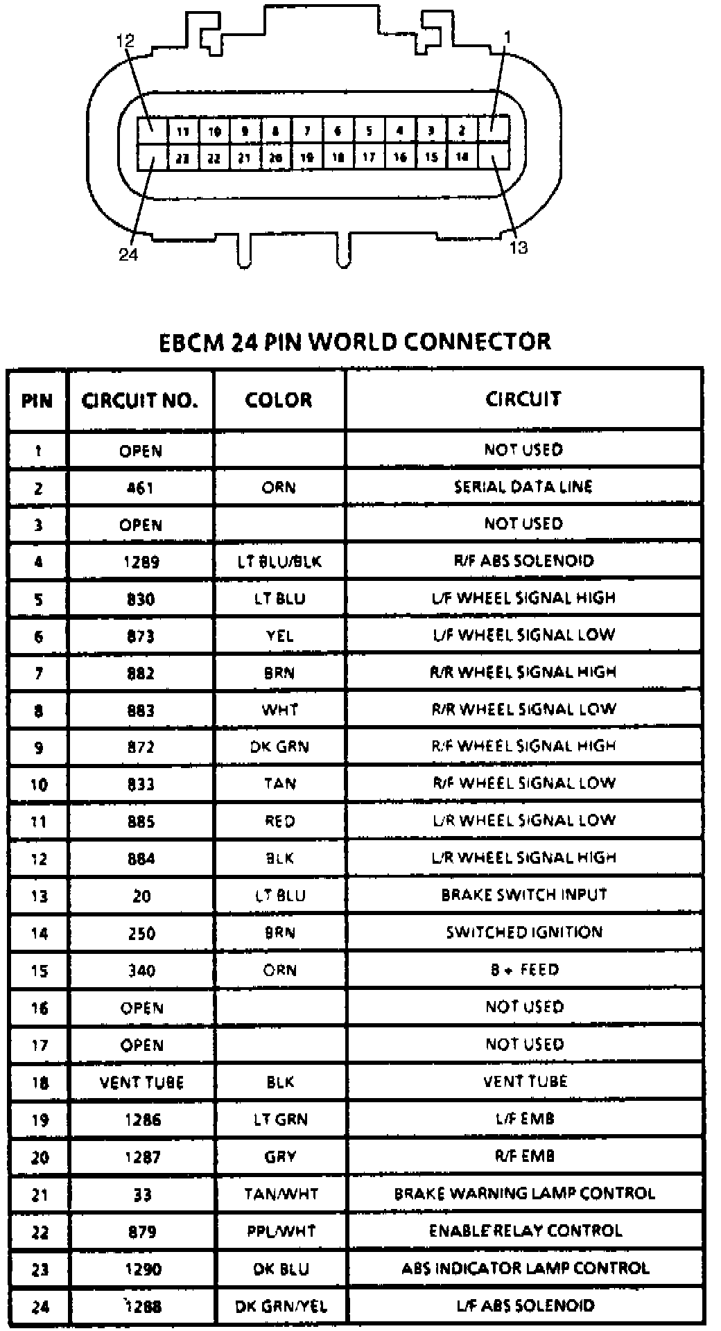 When performing diagnostic procedures refer to Fig. 27 for EBCM connector terminal identification.