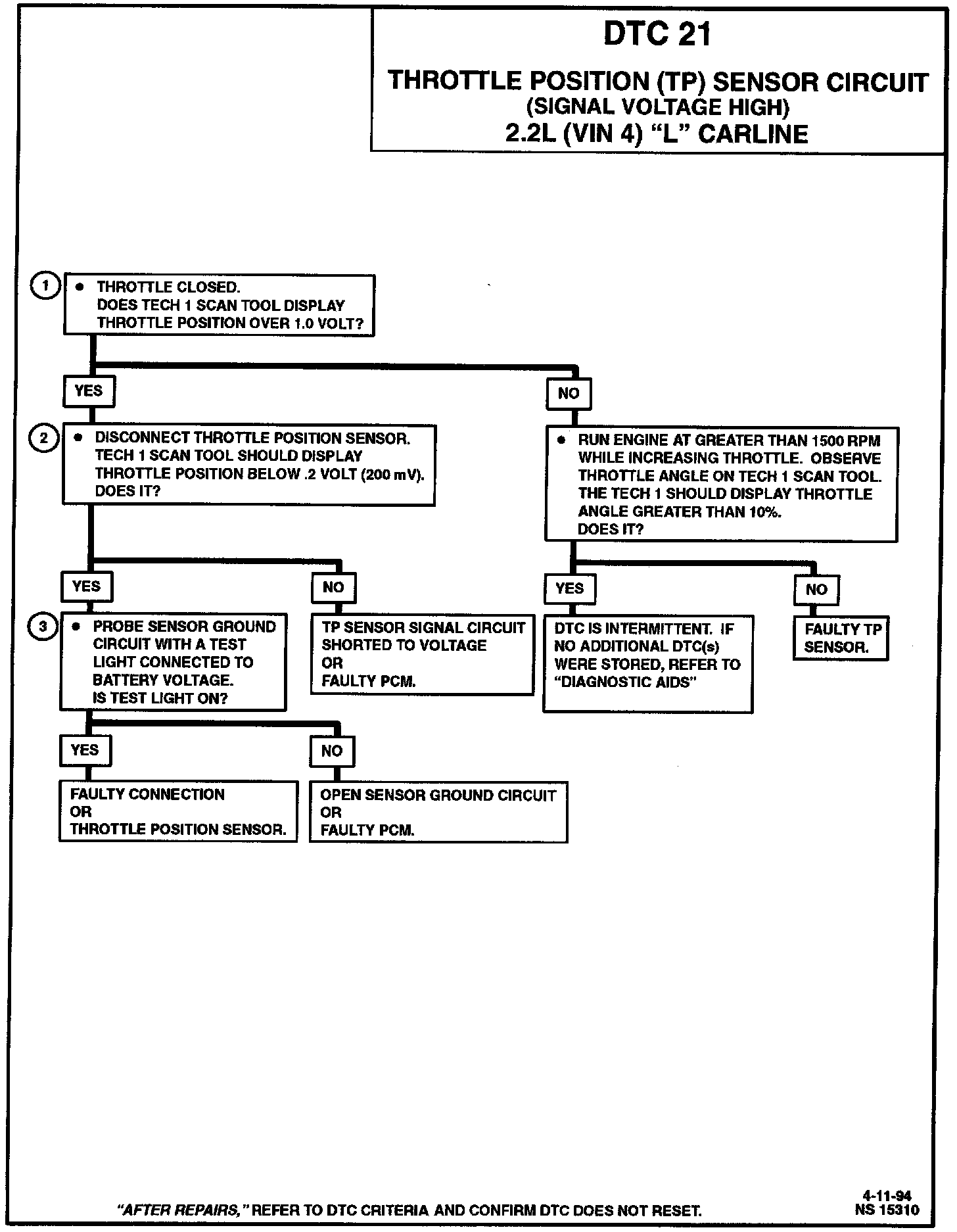 DTC 21 Throttle Position (TP) Sensor Circuit (Signal Sensor High):