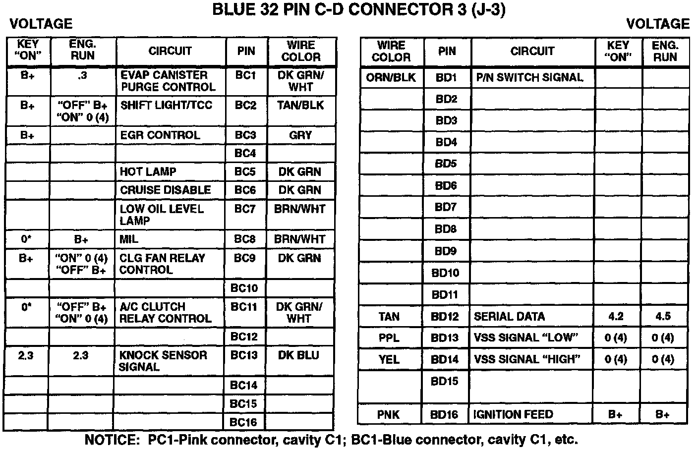BLUE 32 PIN C-D CONNECTOR (J3)