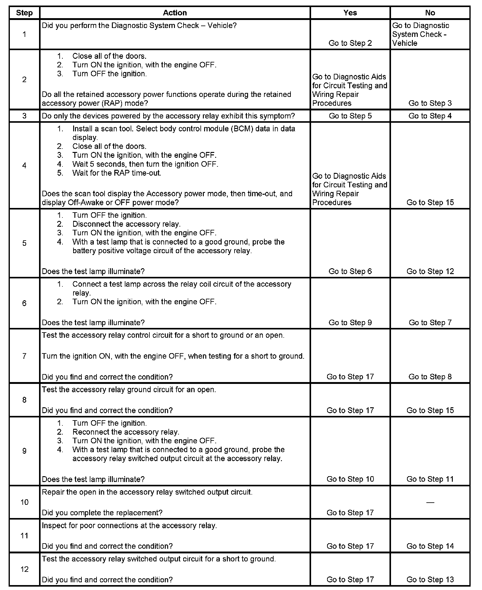 Retained Accessory Power (RAP) Inoperative