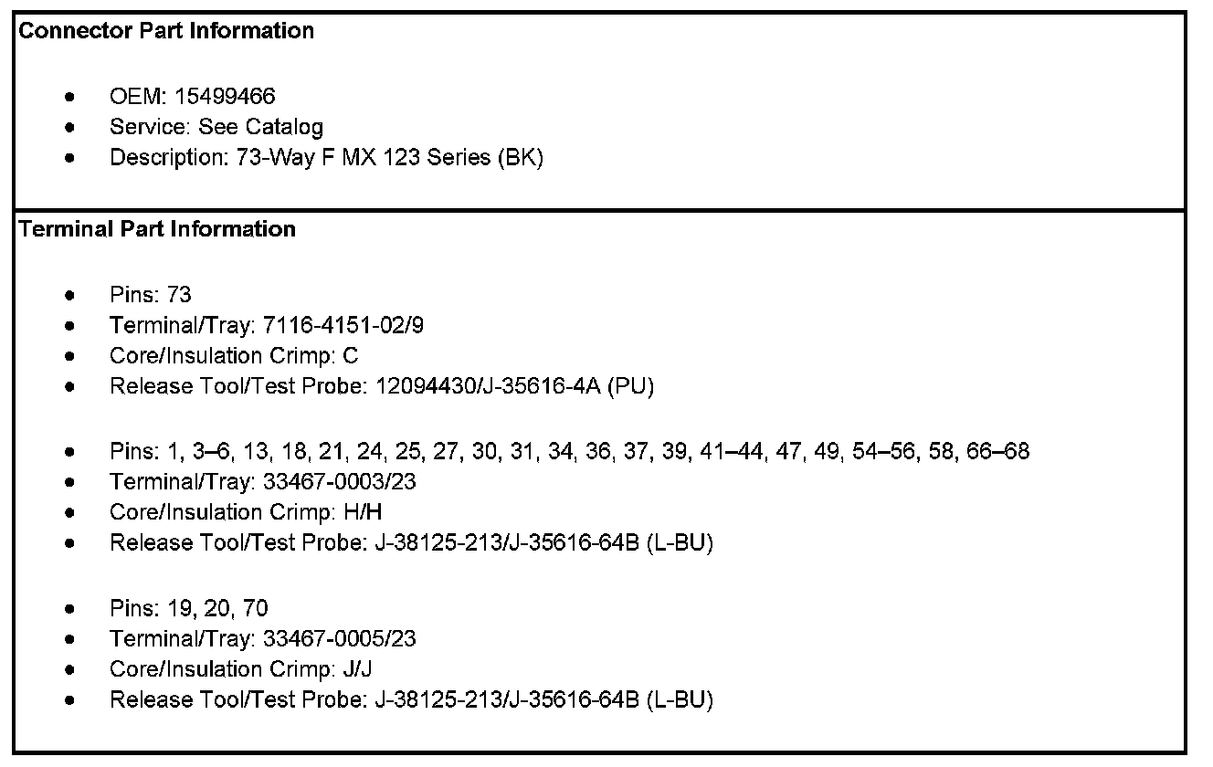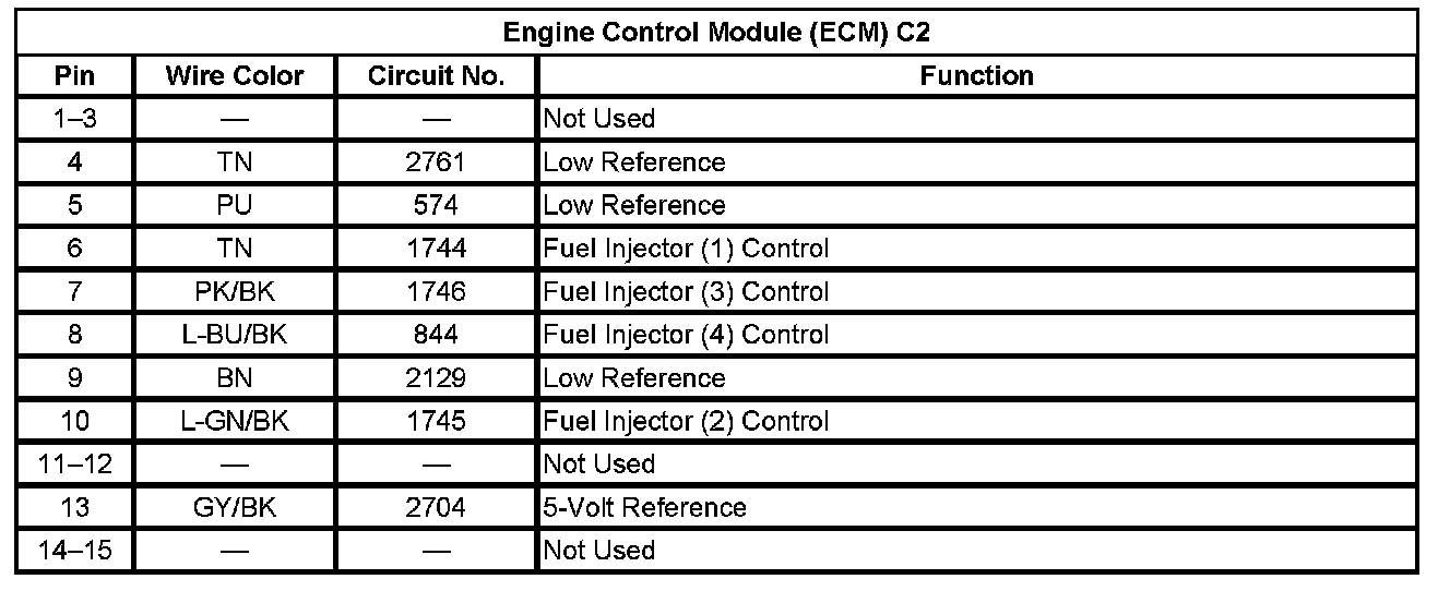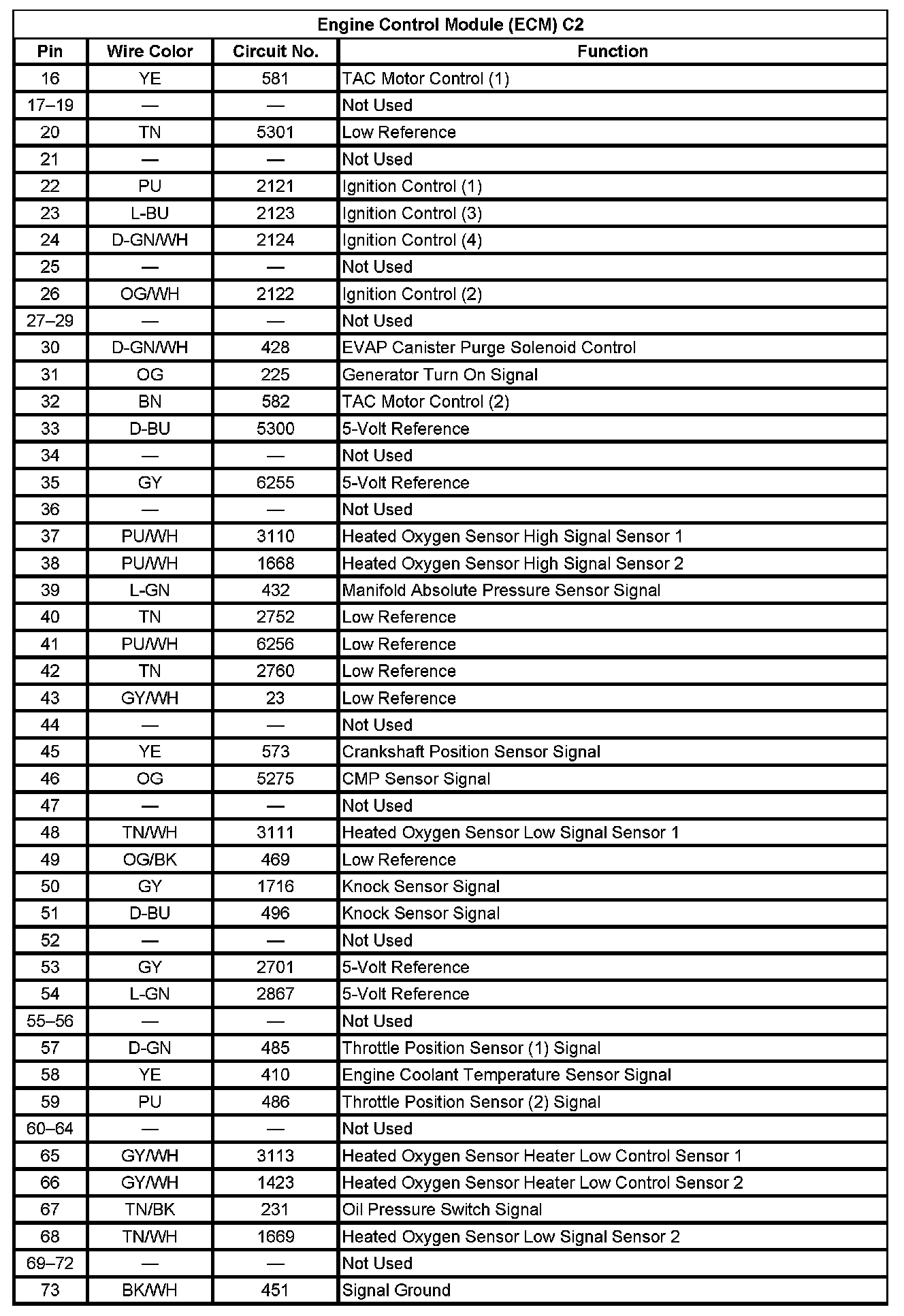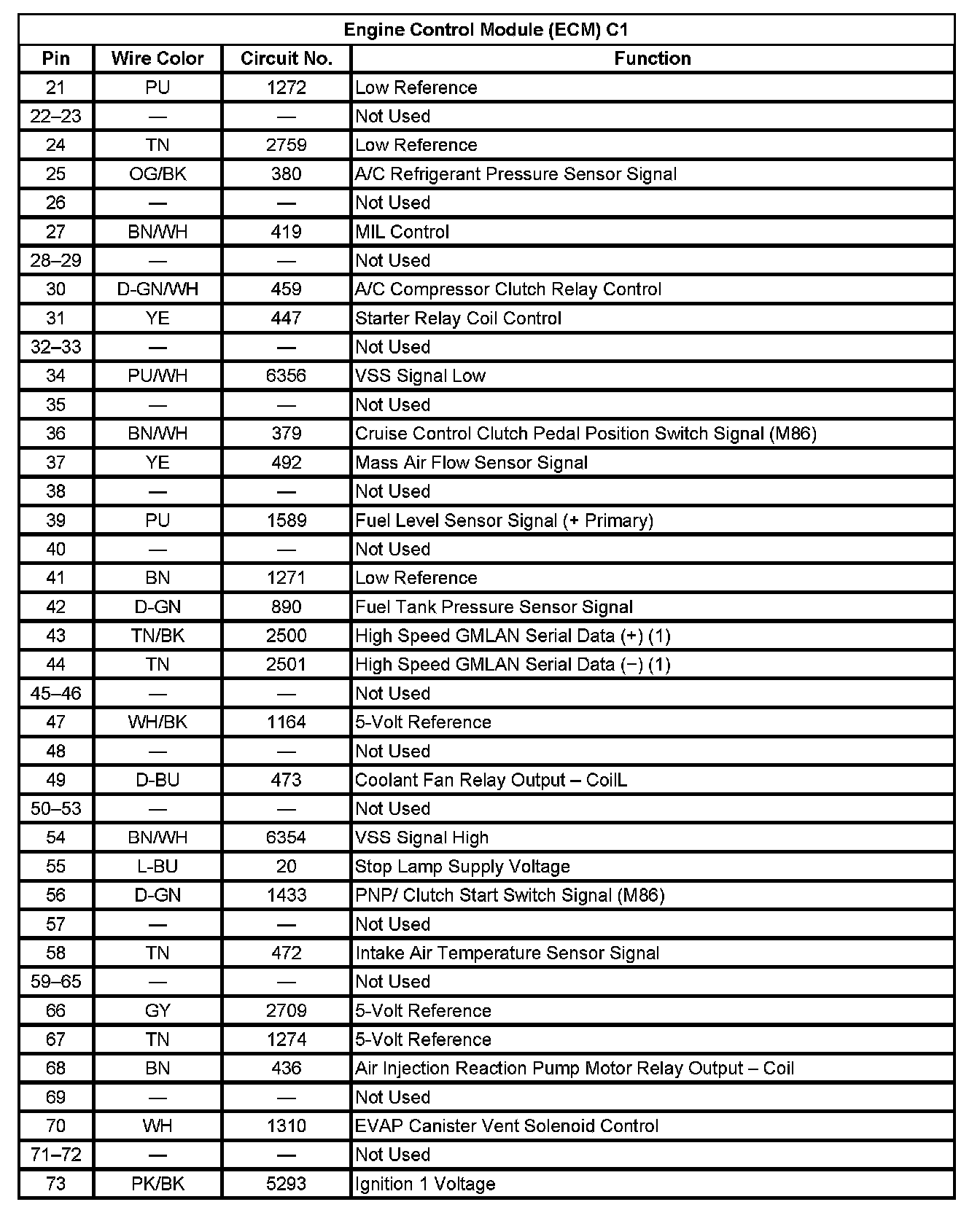 Engine Control Module (ECM) C1 (Pin 21 To Pin 73):