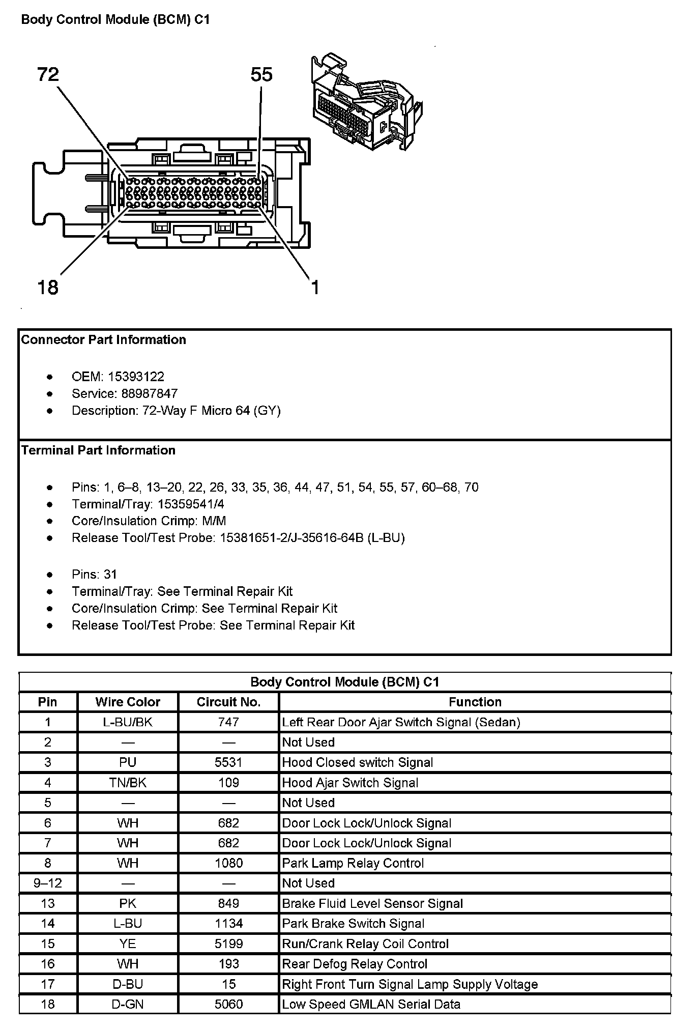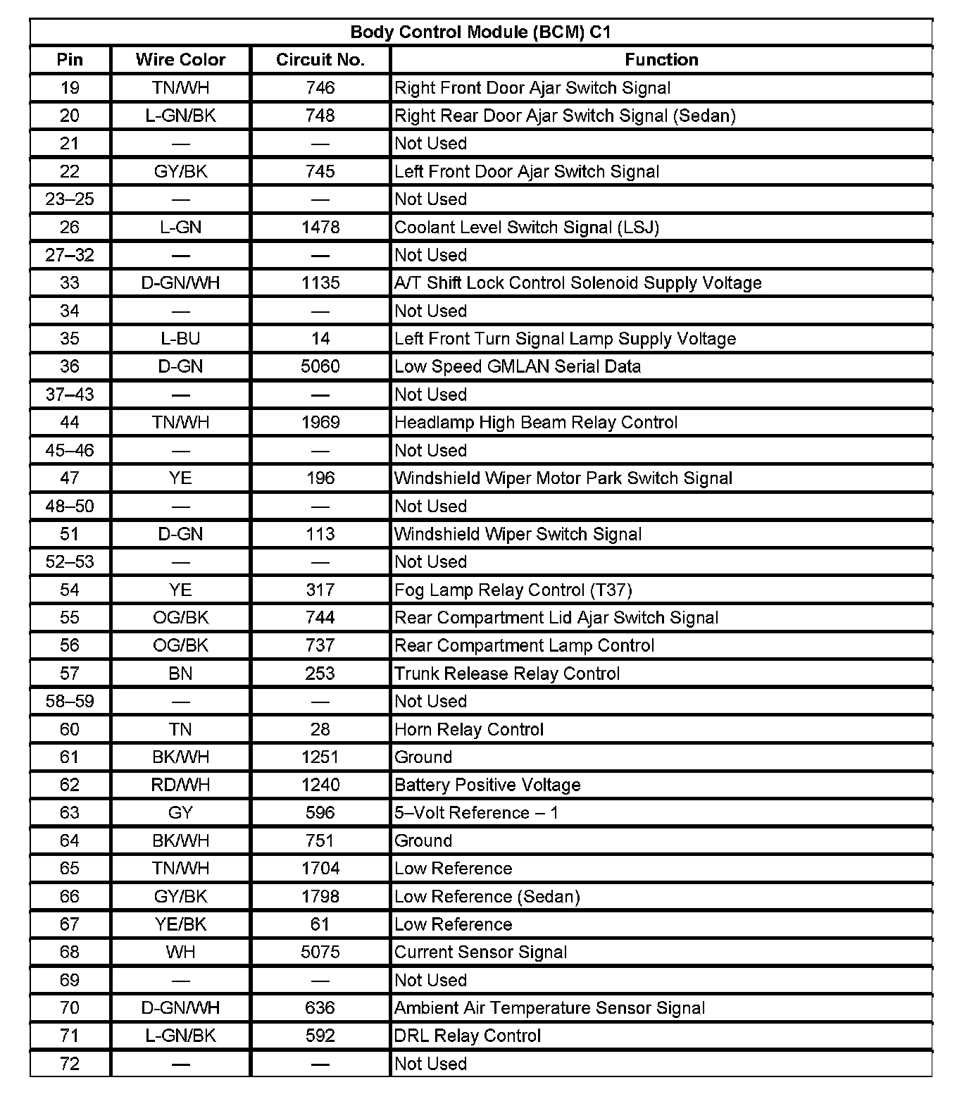 Body Control Module (BCM) C1 (Pin 19 To 72):