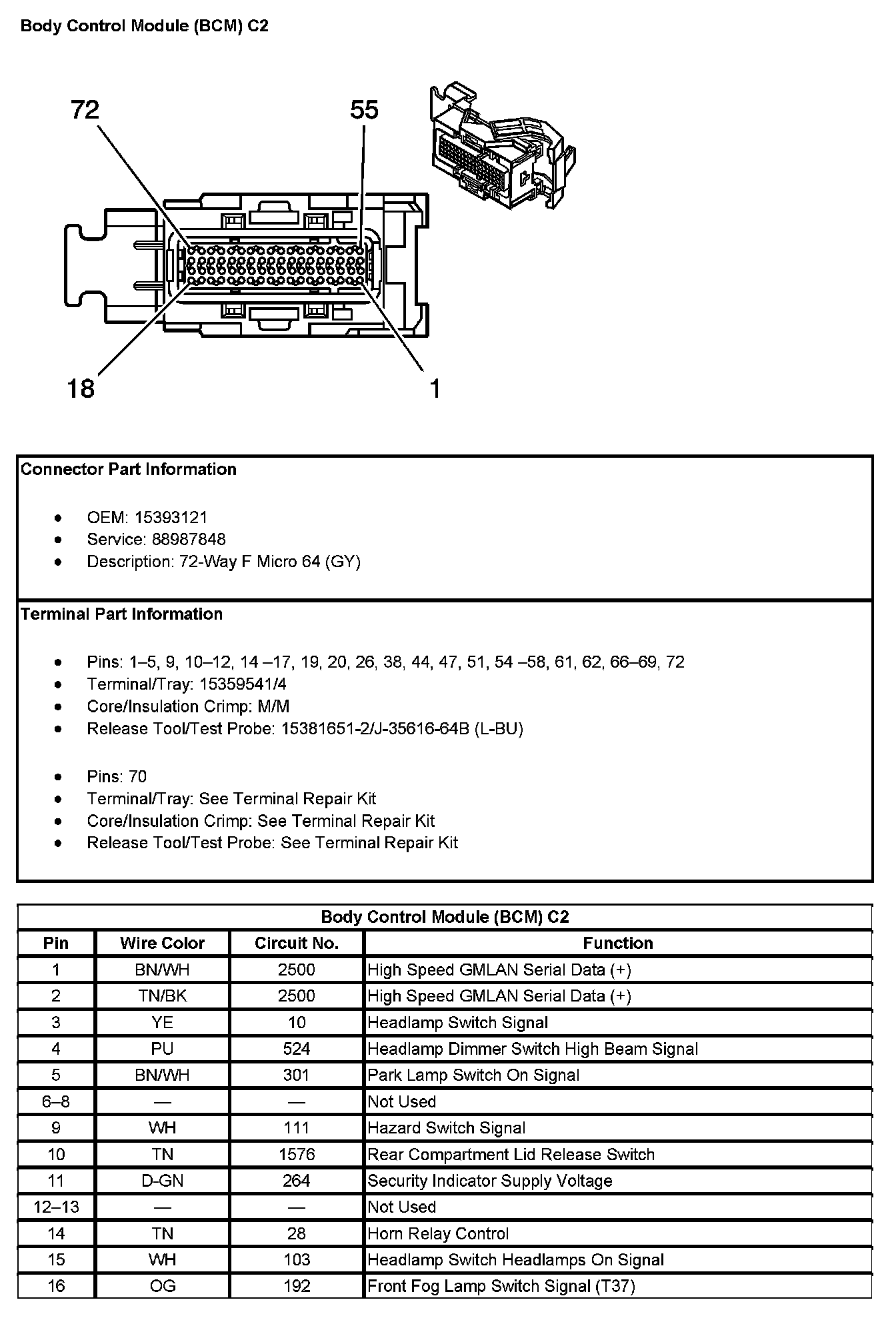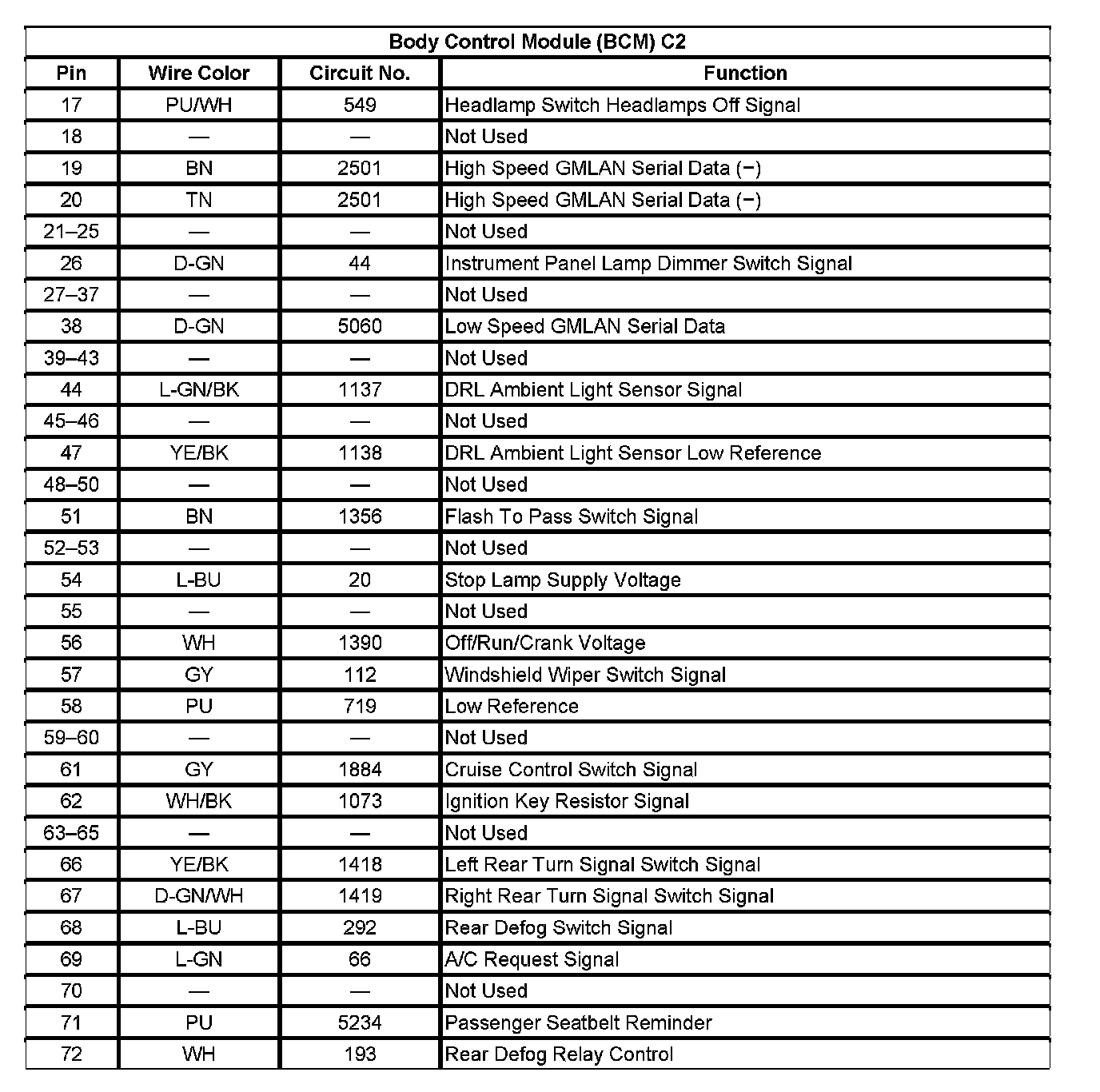 Body Control Module (BCM) C2 (Pin 17 To 72):