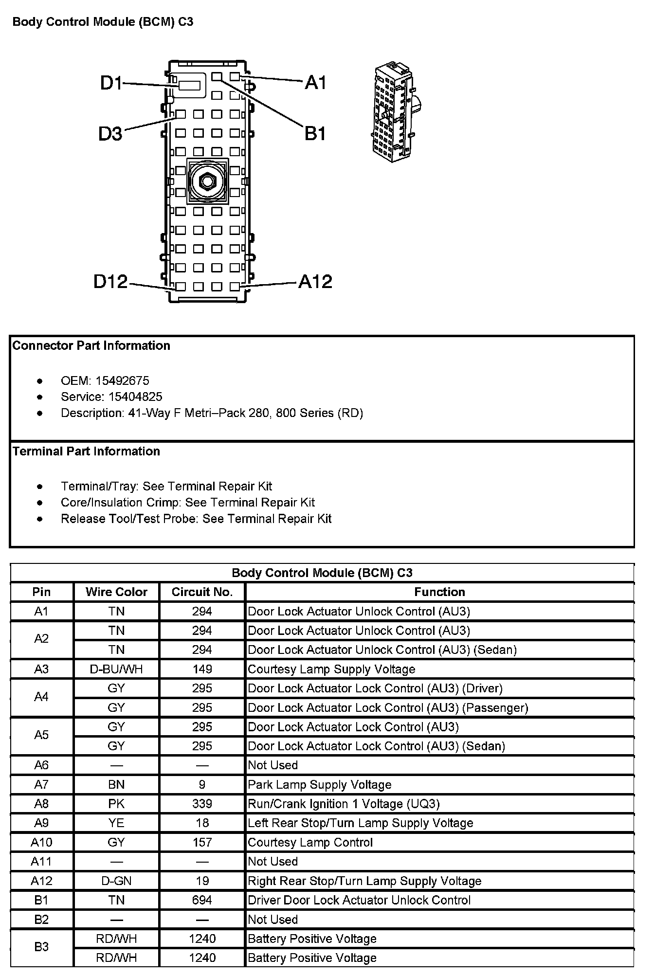 Body Control Module (BCM) C3 (Pin A1 To B3):