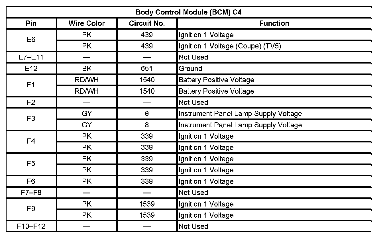 Body Control Module (BCM) C4 (Pin E6 To F12):