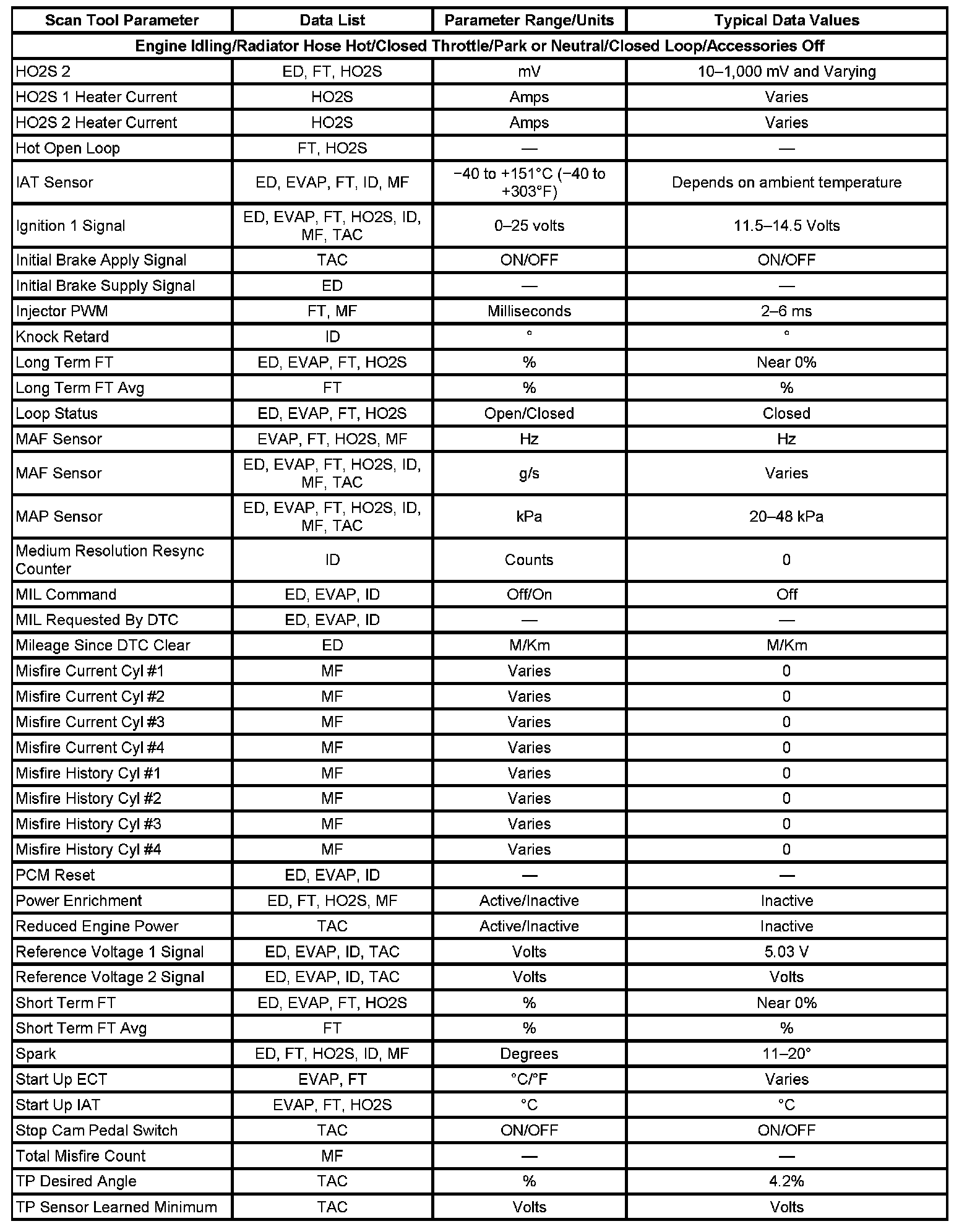 Scan tool values from a properly running engine may be used for comparison with the engine you are diagnosing. The Engine Scan Tool Data List represents values that would be seen on a normal running engine.