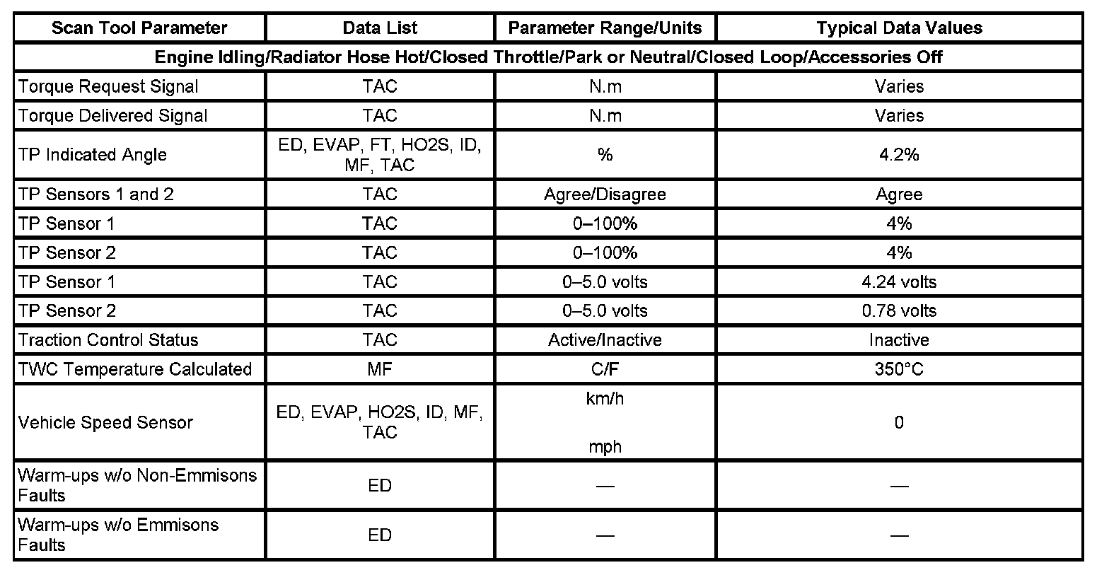 The column labeled Data List indicates where a parameter can be located on the scan tool. Refer to the scan tool operating manual for the exact locations of the data lists. The following is a description of each term listed: