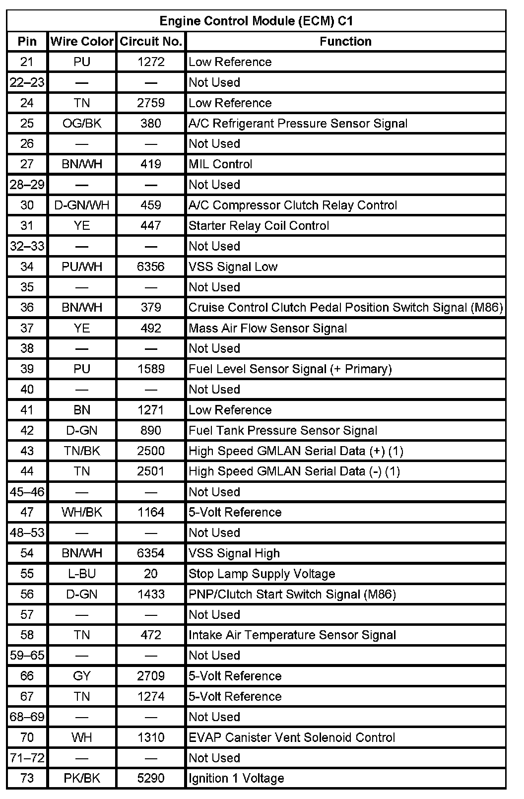 Engine Control Module (ECM) C1 (Pin 21 To 73):