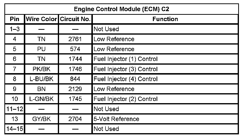 Engine Control Module (ECM) C1 (Pin 1 To 20):