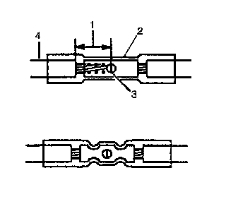 8. Insert the wires into the duraseal splice sleeve until the wire hits the barrel stop. The splice sleeve has a stop in the middle of the barrel in order to prevent the wire from passing through the splice (3).