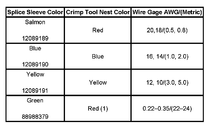 5. Select the proper duraseal splice sleeve (2) and the required crimp nest tool. Refer to the Crimp and Seal Splice Table.