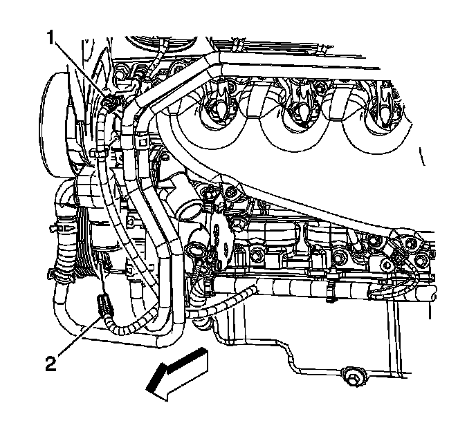 1. Drain the cooling system below the level of the engine coolant temperature (ECT) sensor. Refer to Draining and Filling Cooling System (9C1, 9C3 Static Fill) Draining and Filling Cooling System (LS4 GE 47716 Fill) Draining and Filling Cooling System (LS4 Static Fill) Draining and Filling Cooling System (LZE, LZ4, LZ8, 9C1, 9C3, GE47716 Fill) Draining and Filling Cooling System (LZE, LZ4, LZ8 Static Fill).