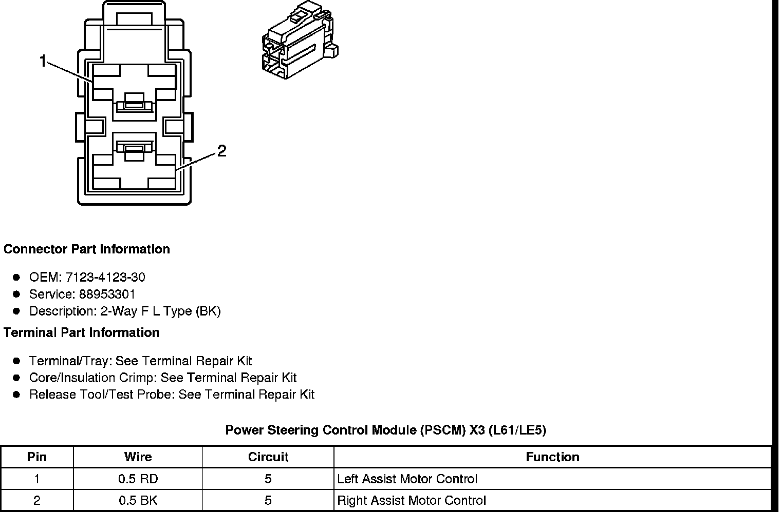 Power Steering Control Module (PSCM) X2 (L61/LE5)