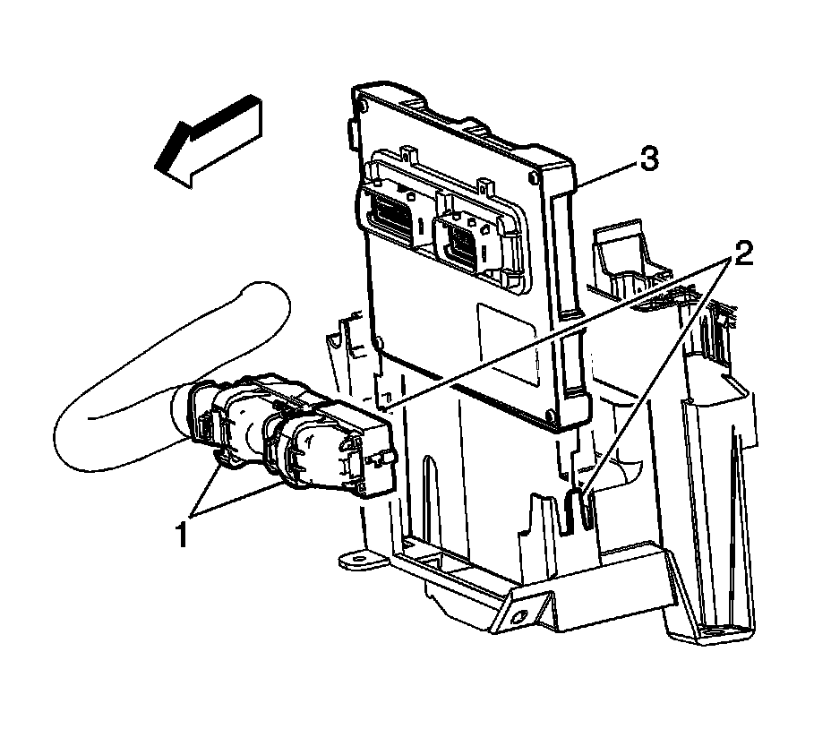 1. Install the ECM (3) by pushing straight down until the tabs (2) lock.