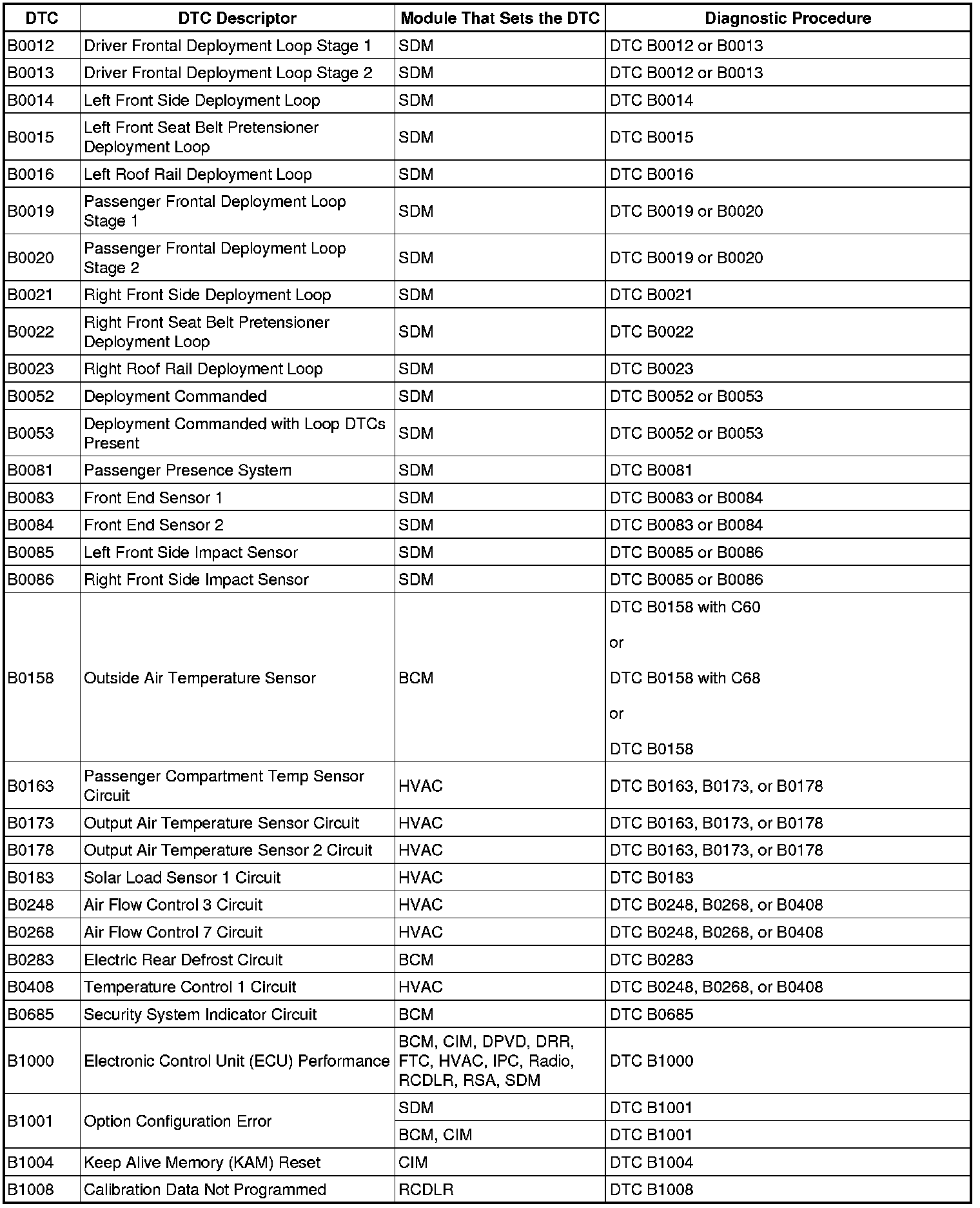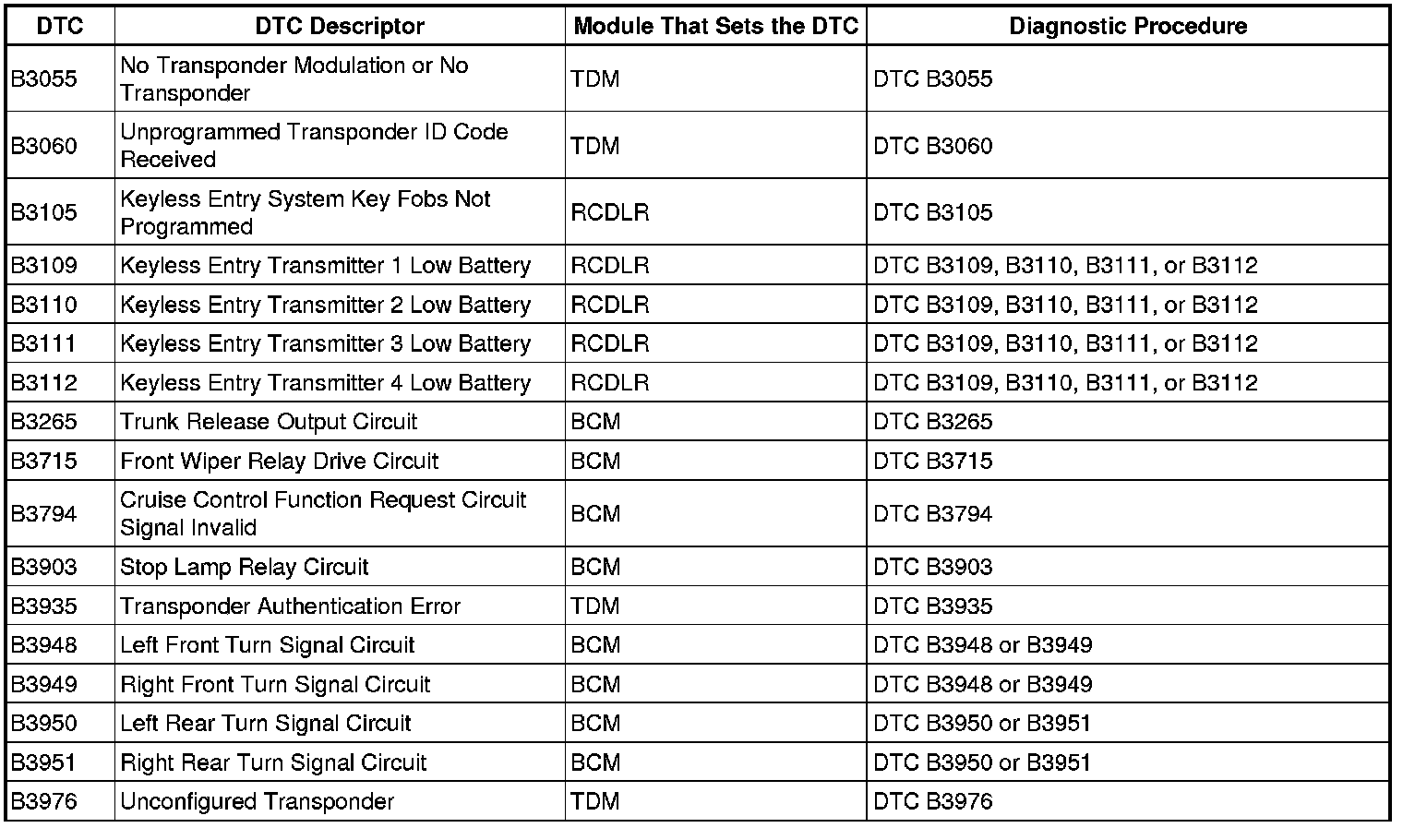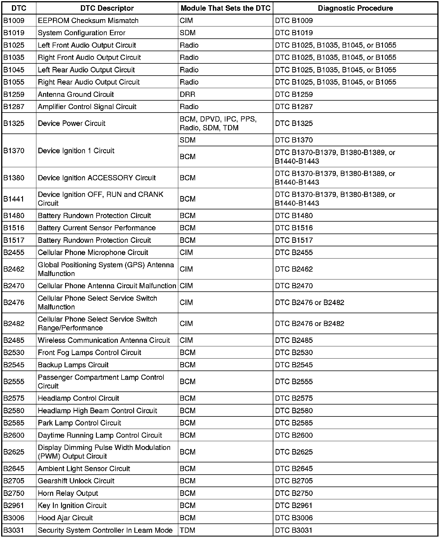 This master DTC list includes all applicable DTCs in alphanumeric order with descriptors.