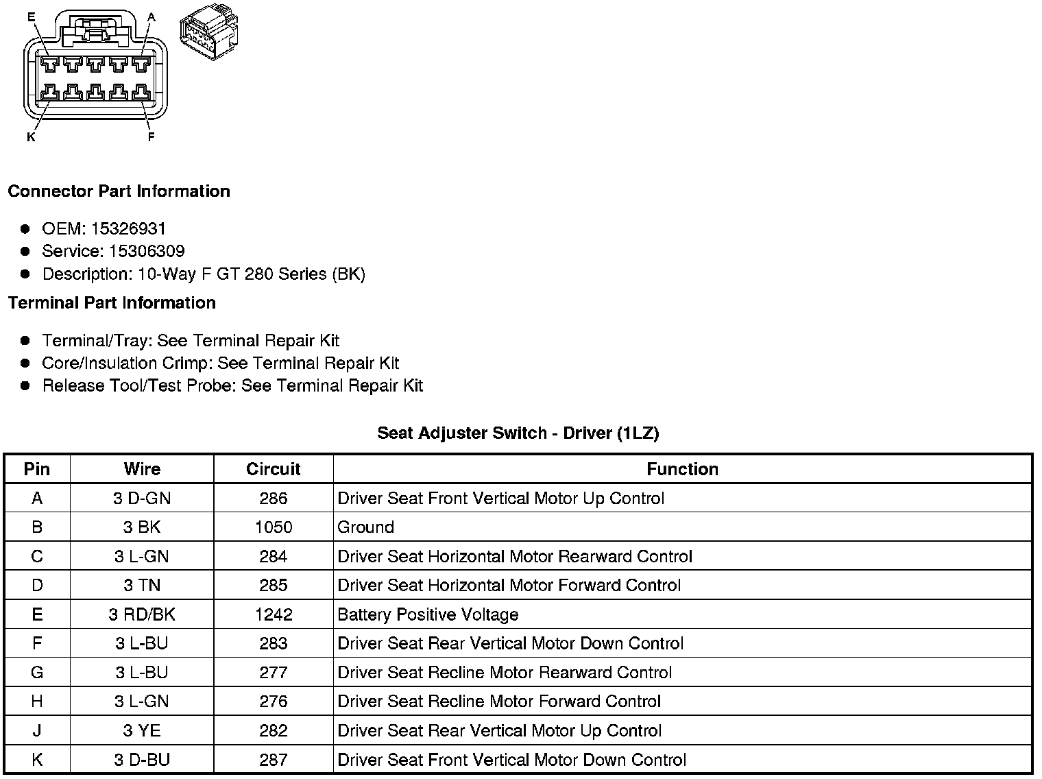Seat Adjuster Switch - Driver (1LZ)