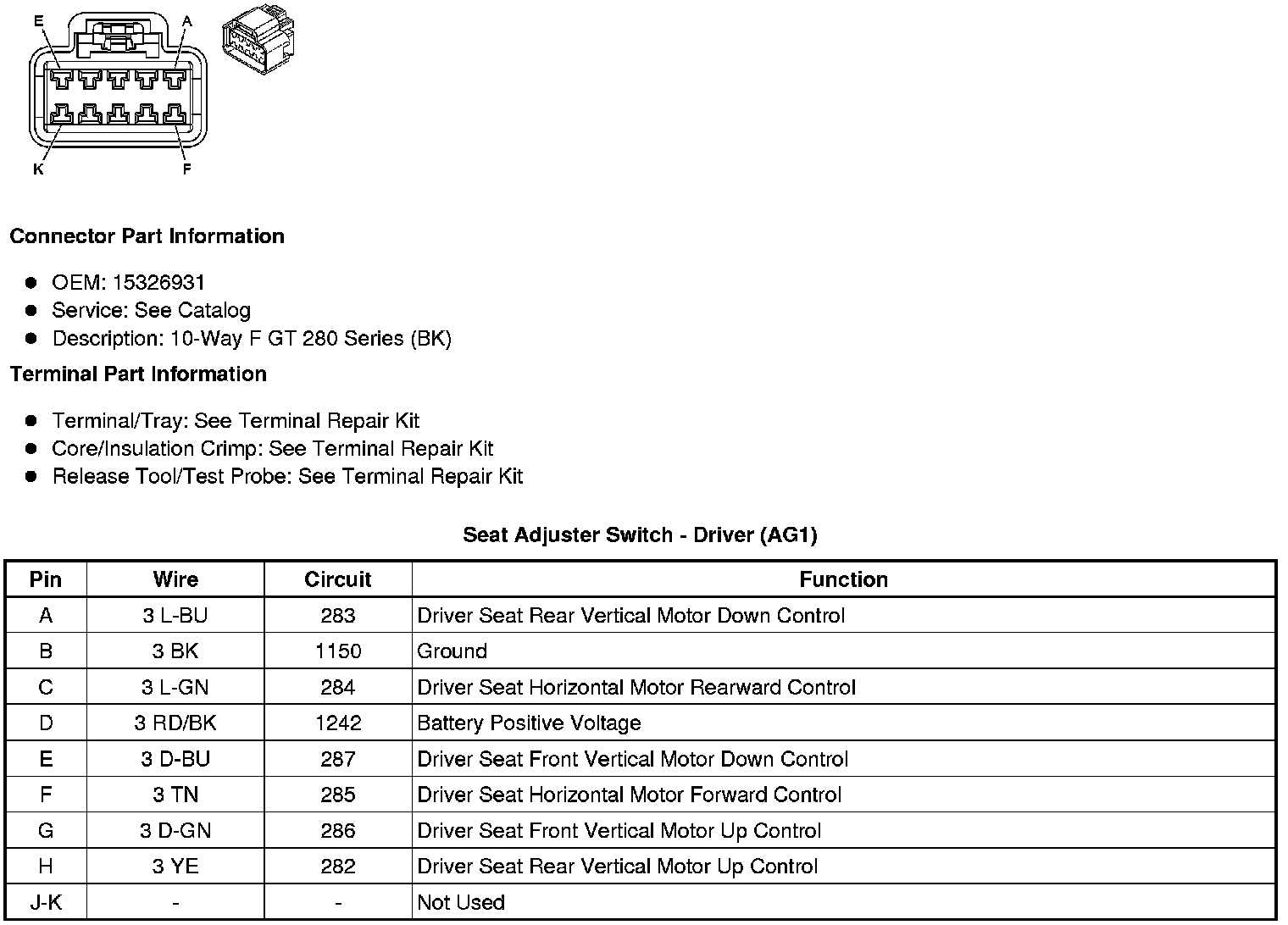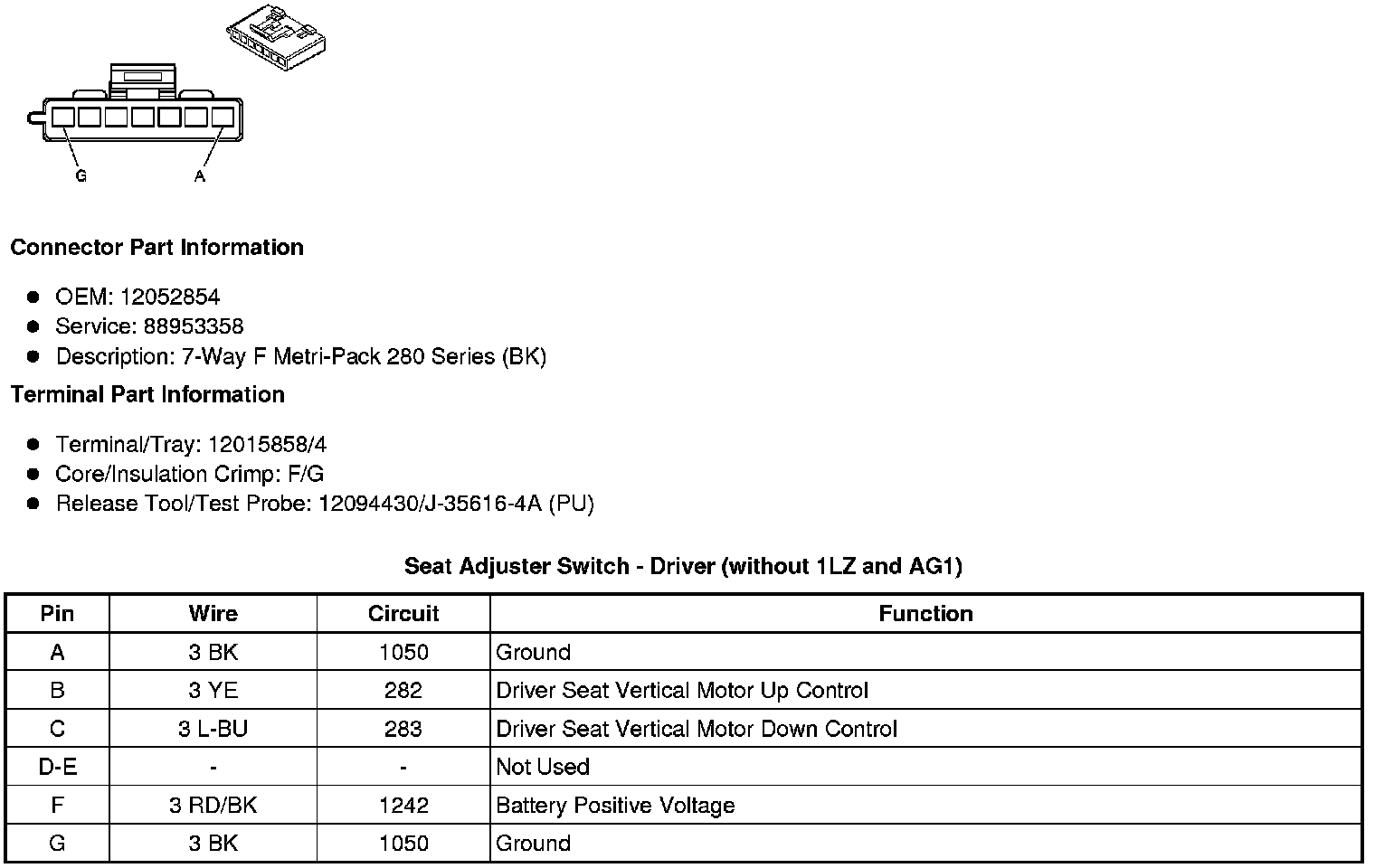 Seat Adjuster Switch - Driver (AG1)