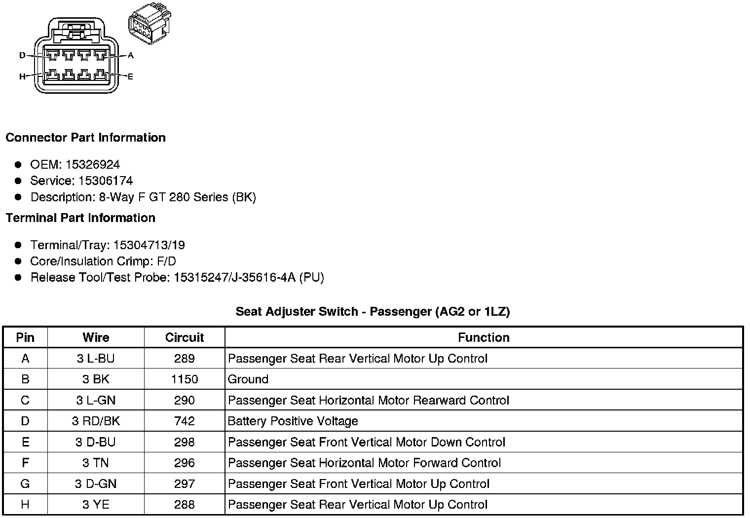 Seat Adjuster Switch - Passenger (AG2 or 1LZ)