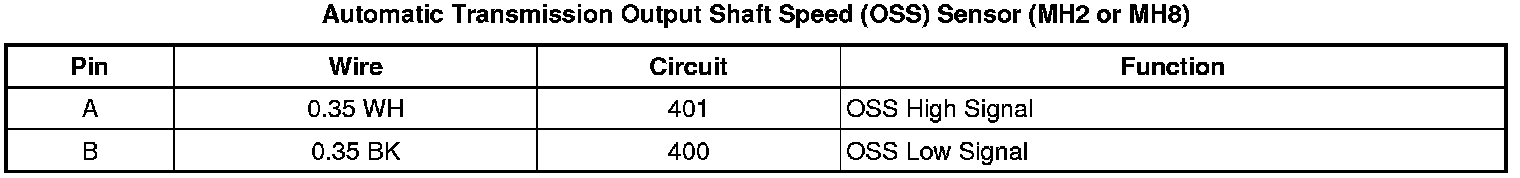 Automatic Transmission Output Shaft Speed (OSS) Sensor (MH2 or MH8)