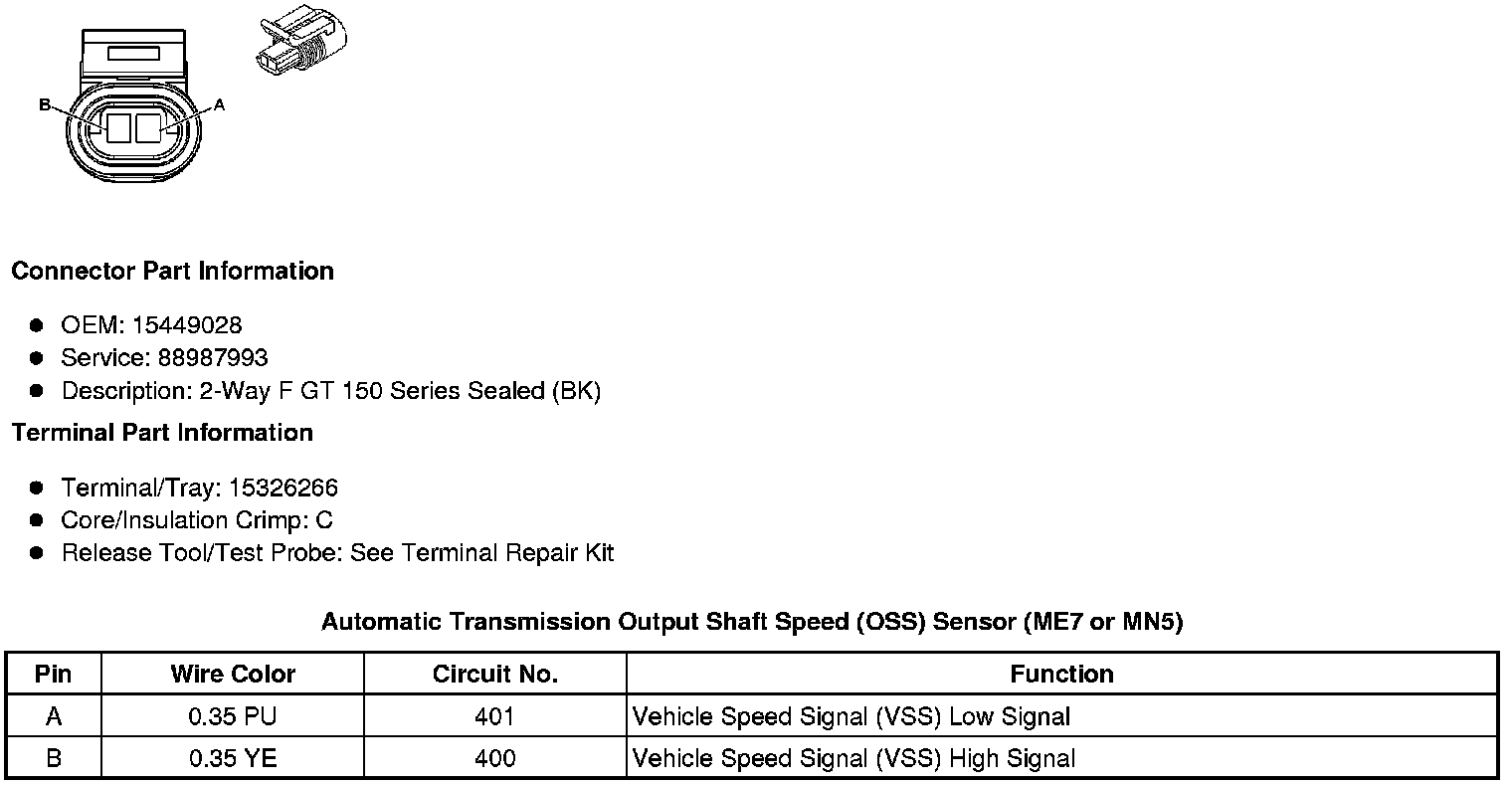Automatic Transmission Output Shaft Speed (OSS) Sensor (ME7 or MN5)