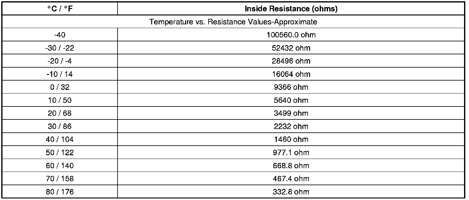 Sensor Resistance Table (Inside Air Temperature Sensor)