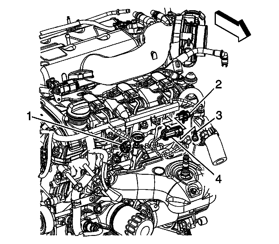 1. Disconnect the engine wiring harness electrical connector (1) from the engine coolant temperature (ECT) sensor.
