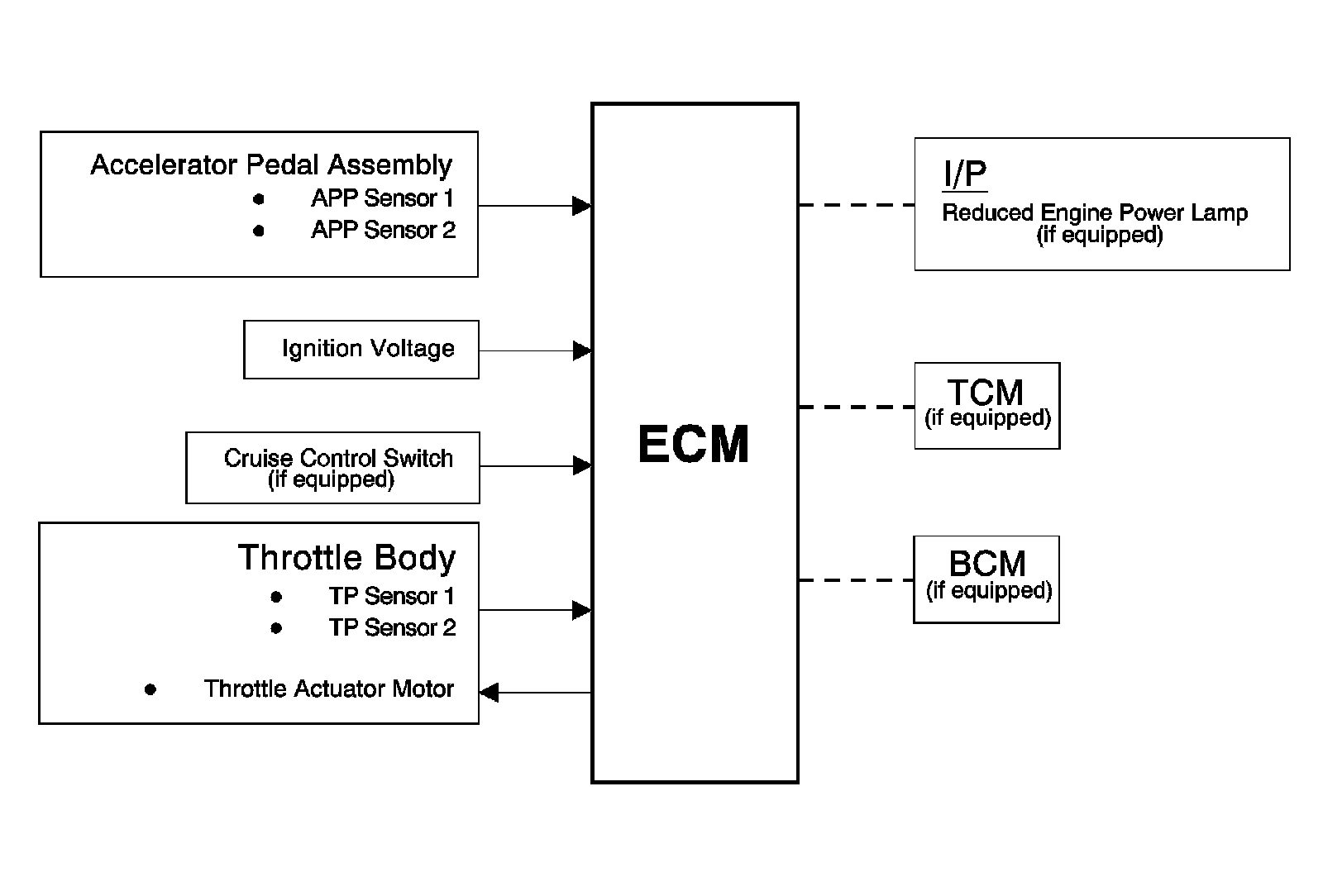 When the ECM detects a condition with the TAC system, the ECM may enter a reduced engine power mode. Reduced engine power may cause one or more of the following conditions: