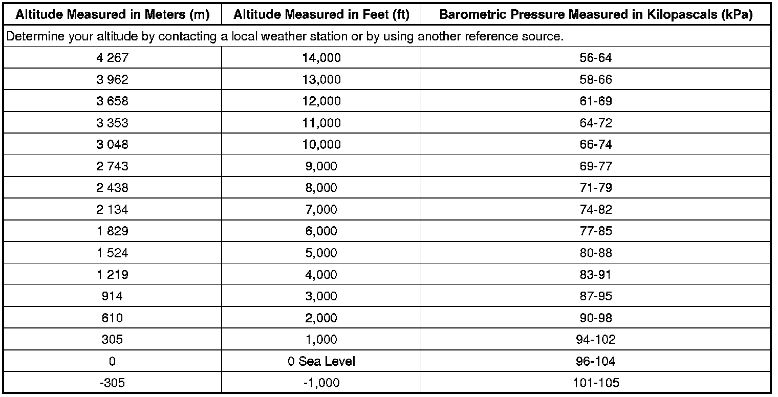 Altitude Versus Barometric Pressure