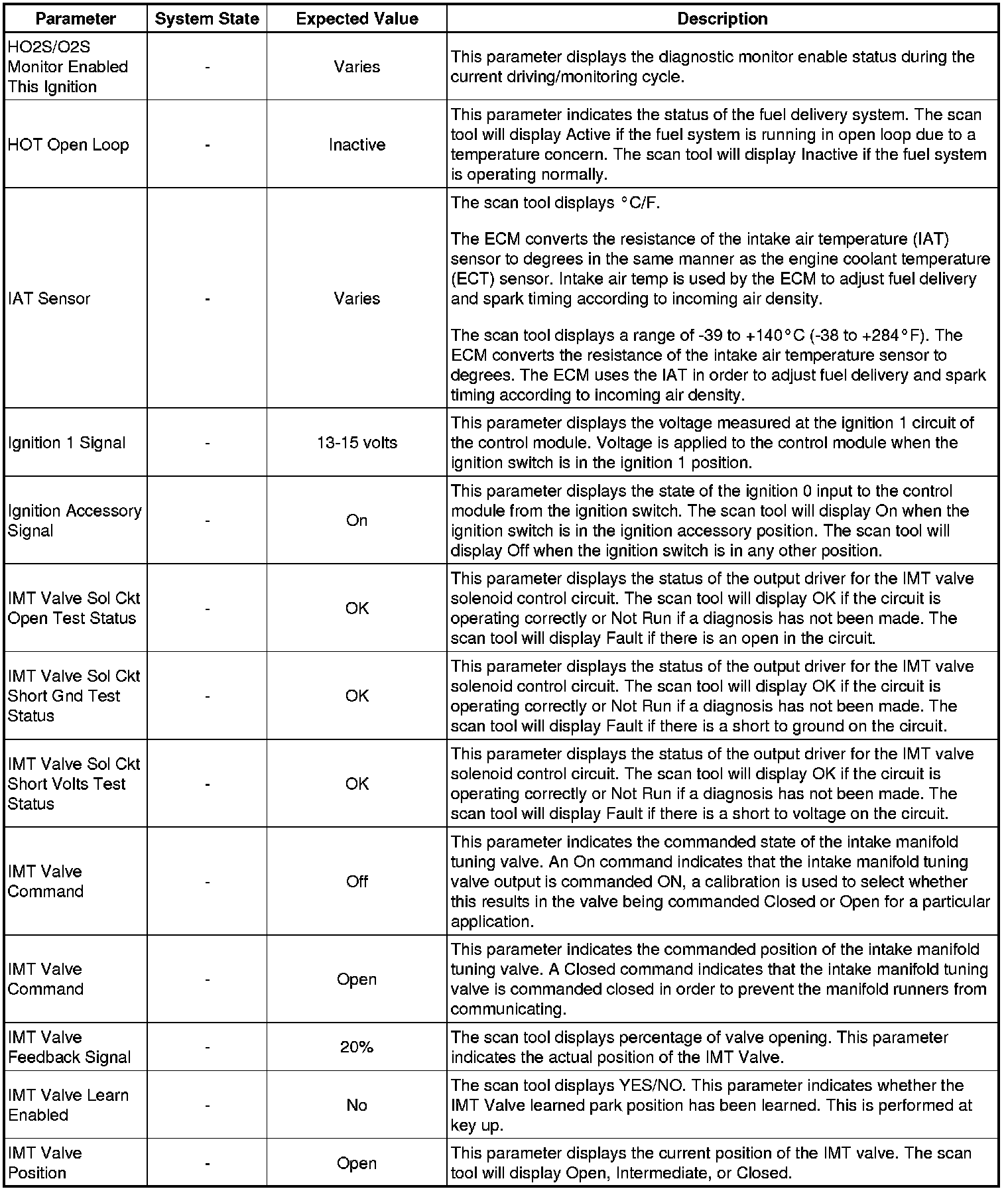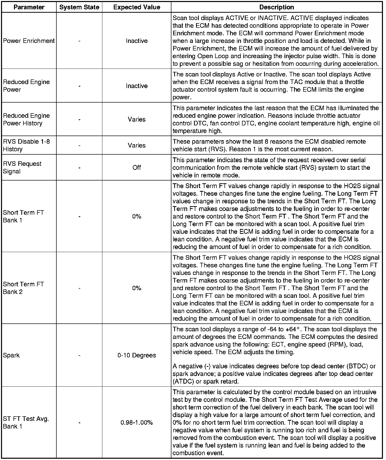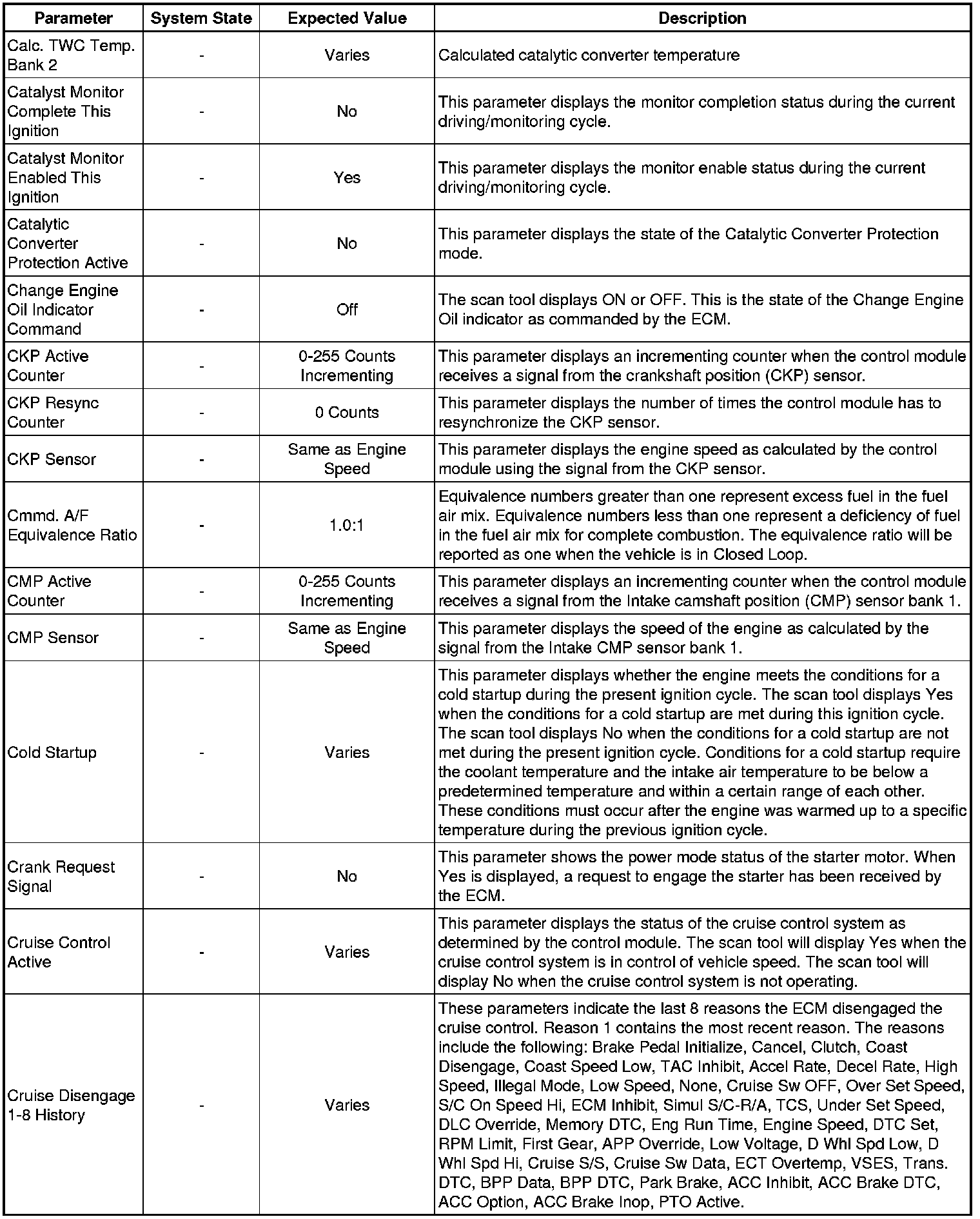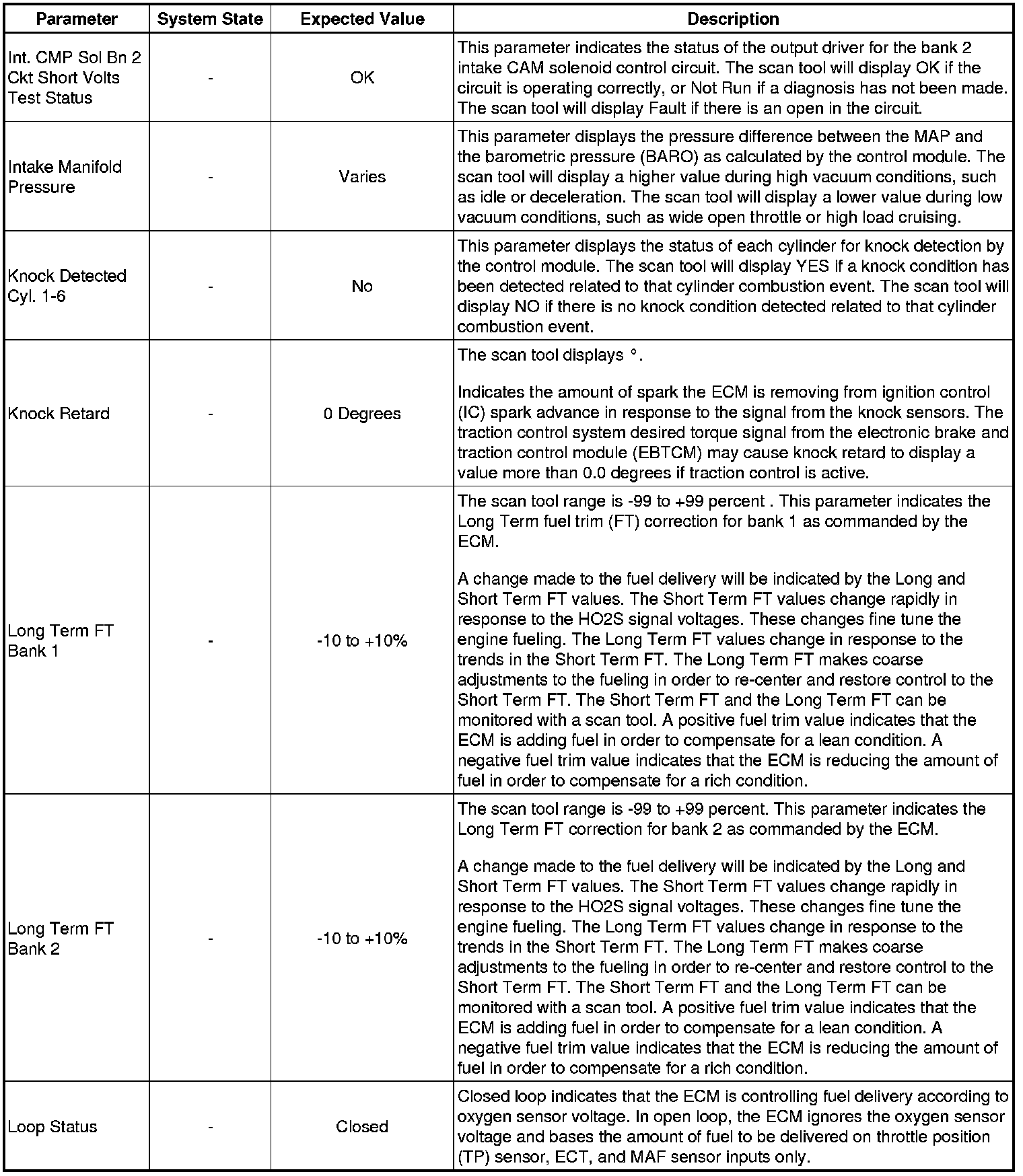Only the parameters listed below are referenced in this service manual for use in diagnosis. If all values are within the typical range described below, refer to Symptoms - Engine Controls (- Symptoms - Engine Controls) for diagnosis.