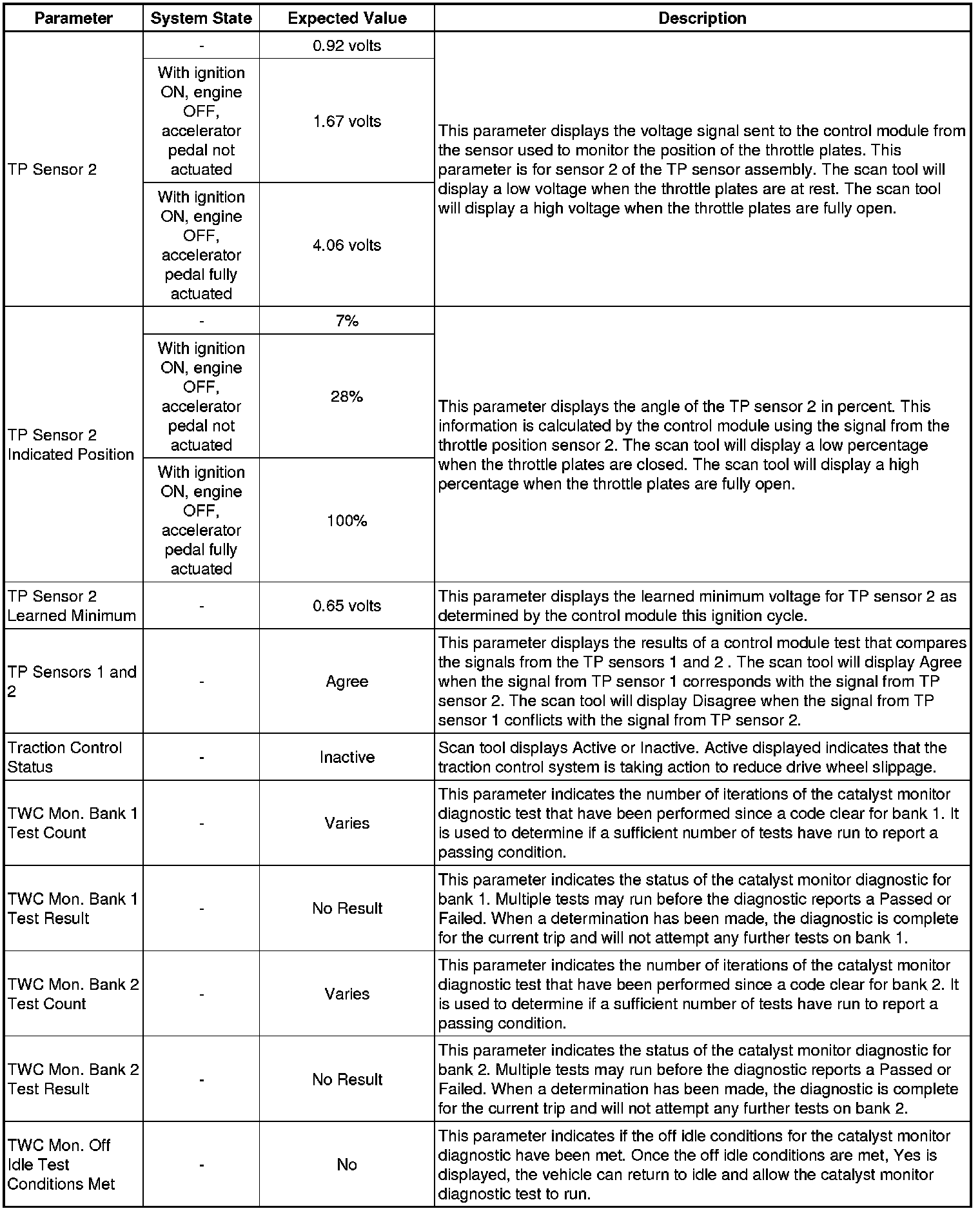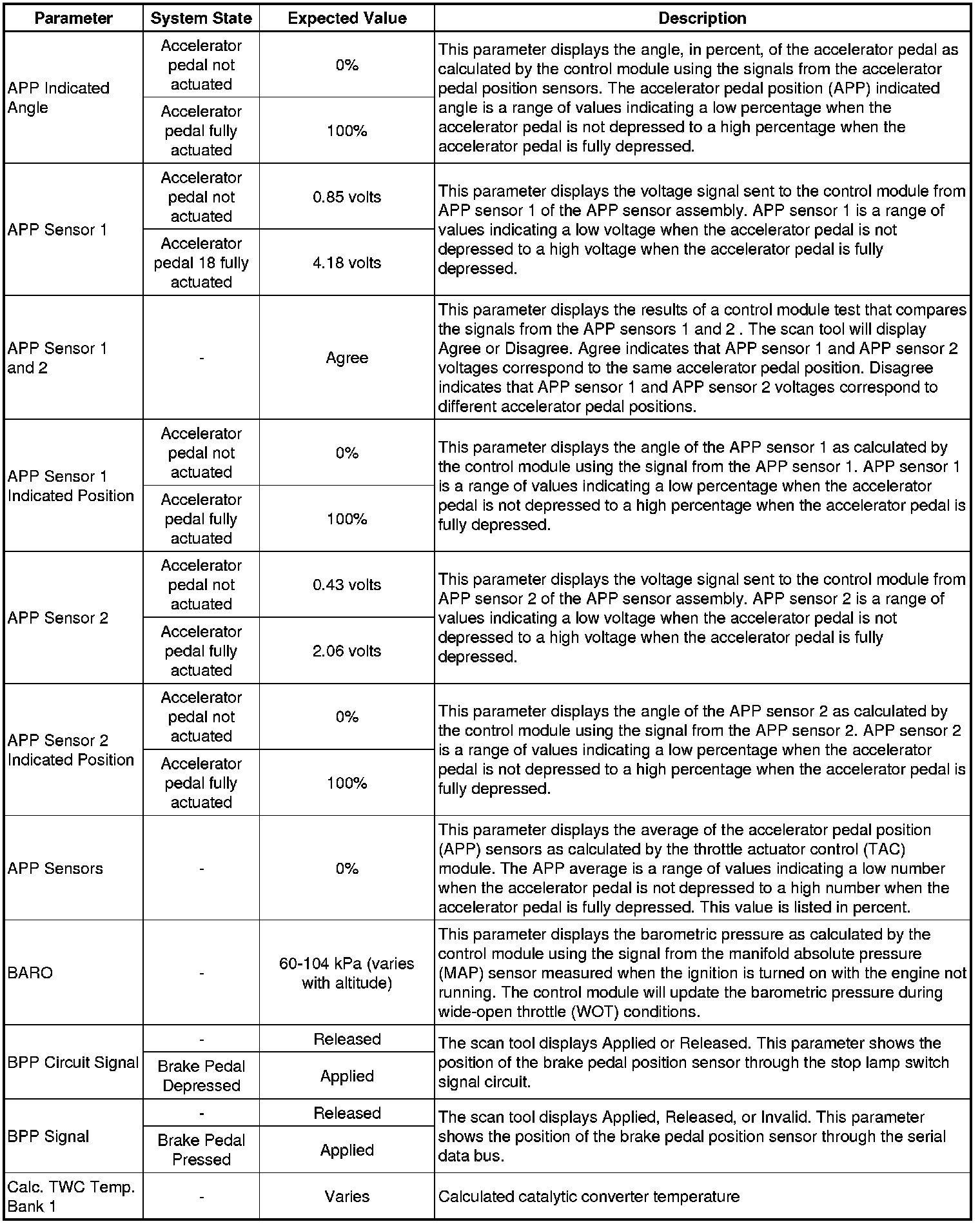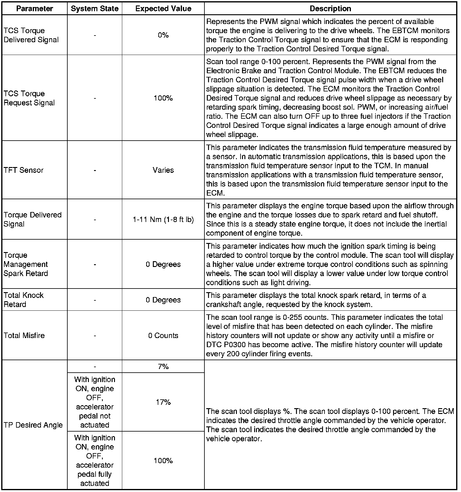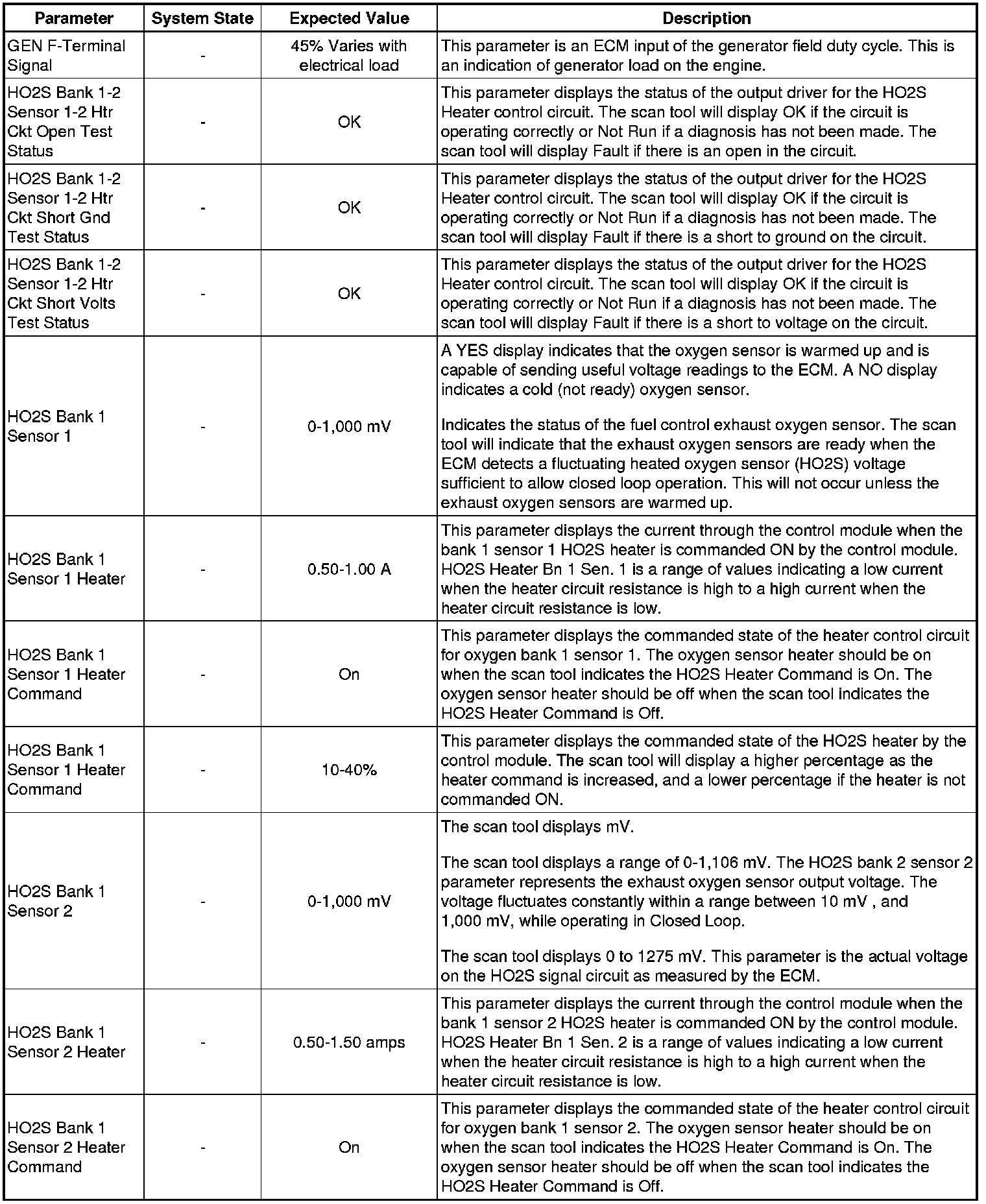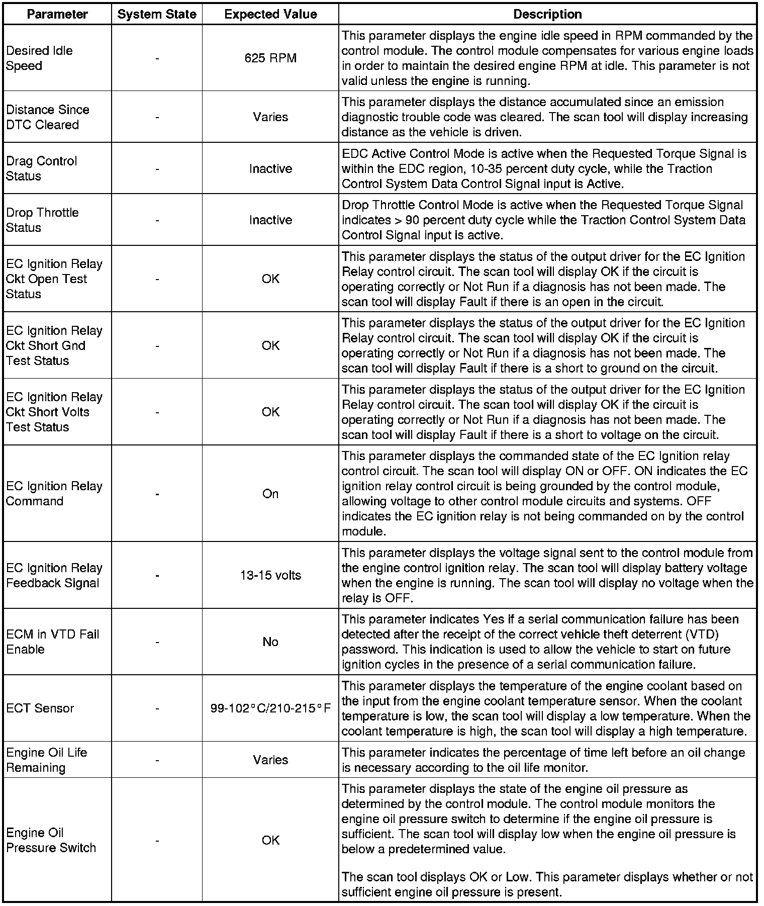 Only the parameters listed below are referenced in this service manual for use in diagnosis. If all values are within the typical range described below, refer to Symptoms - Engine Controls (- Symptoms - Engine Controls) for diagnosis.