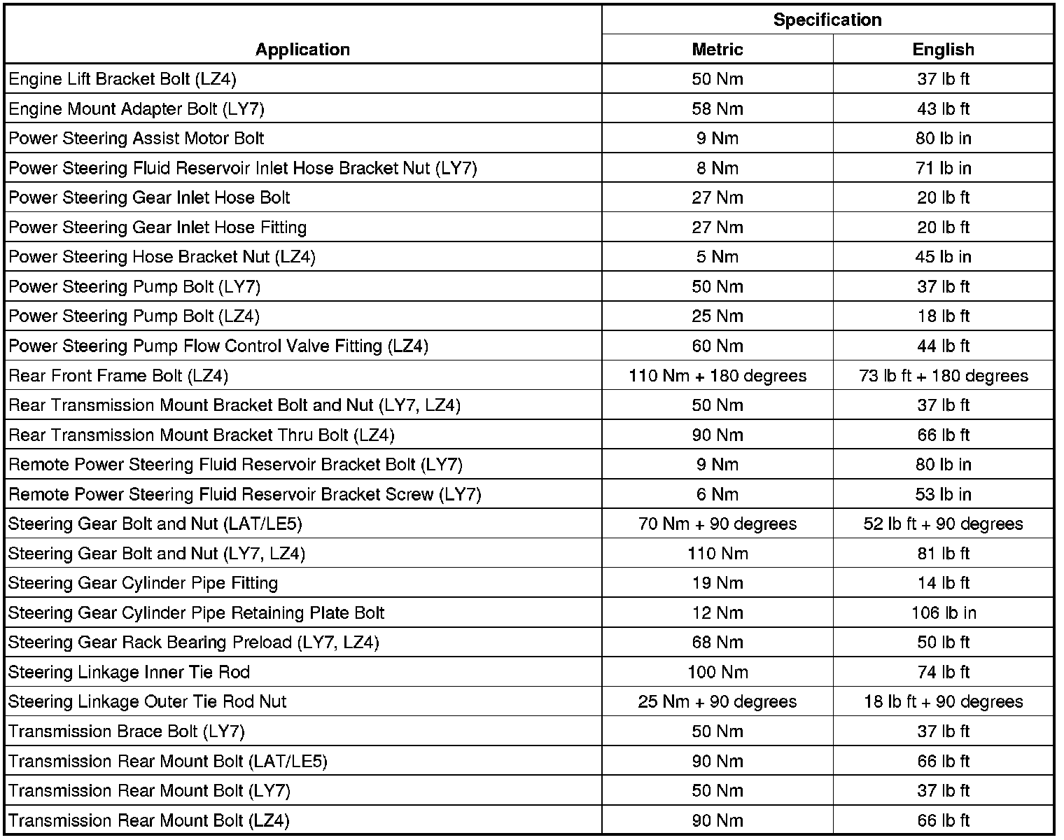 Fastener Tightening Specifications