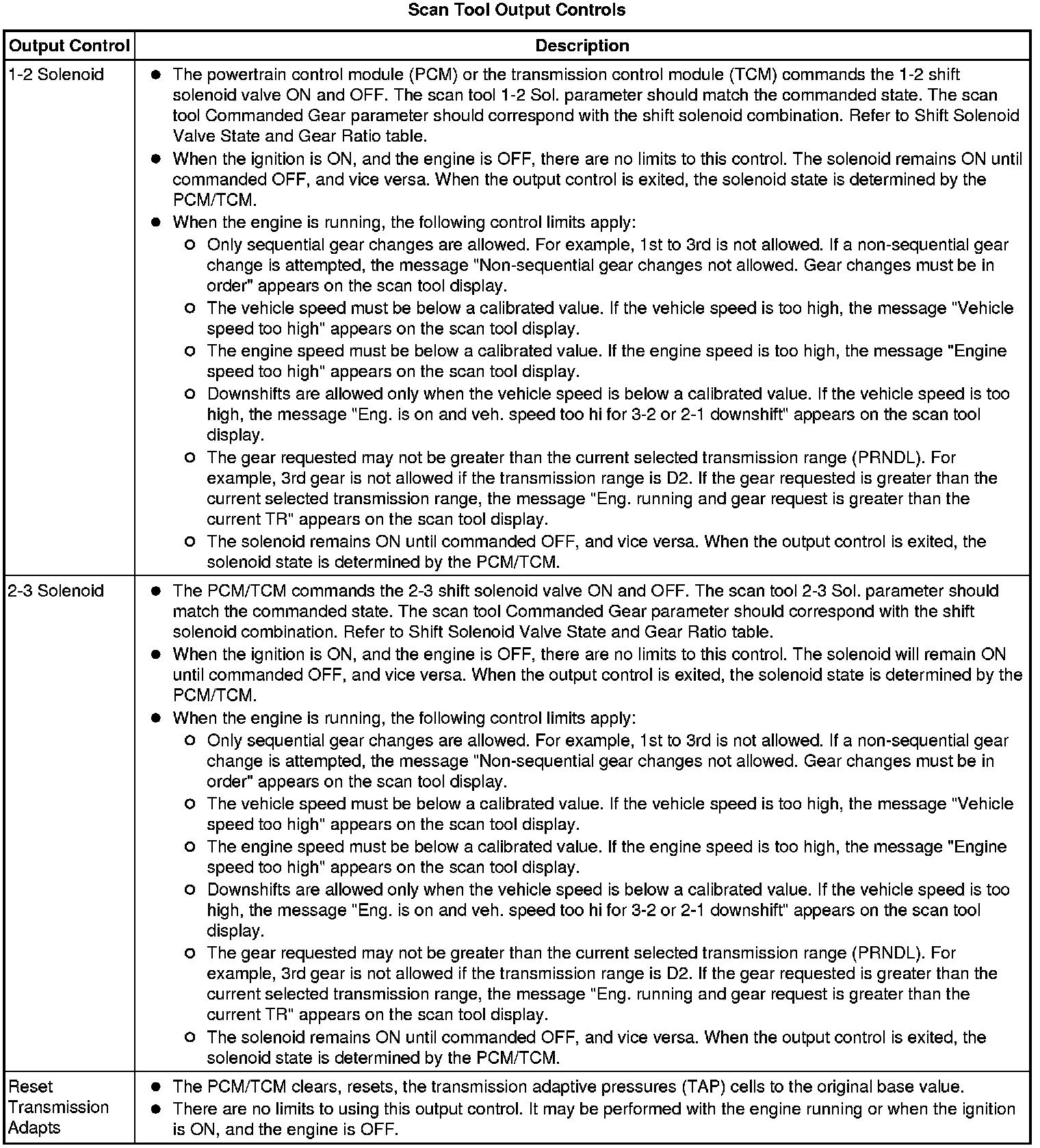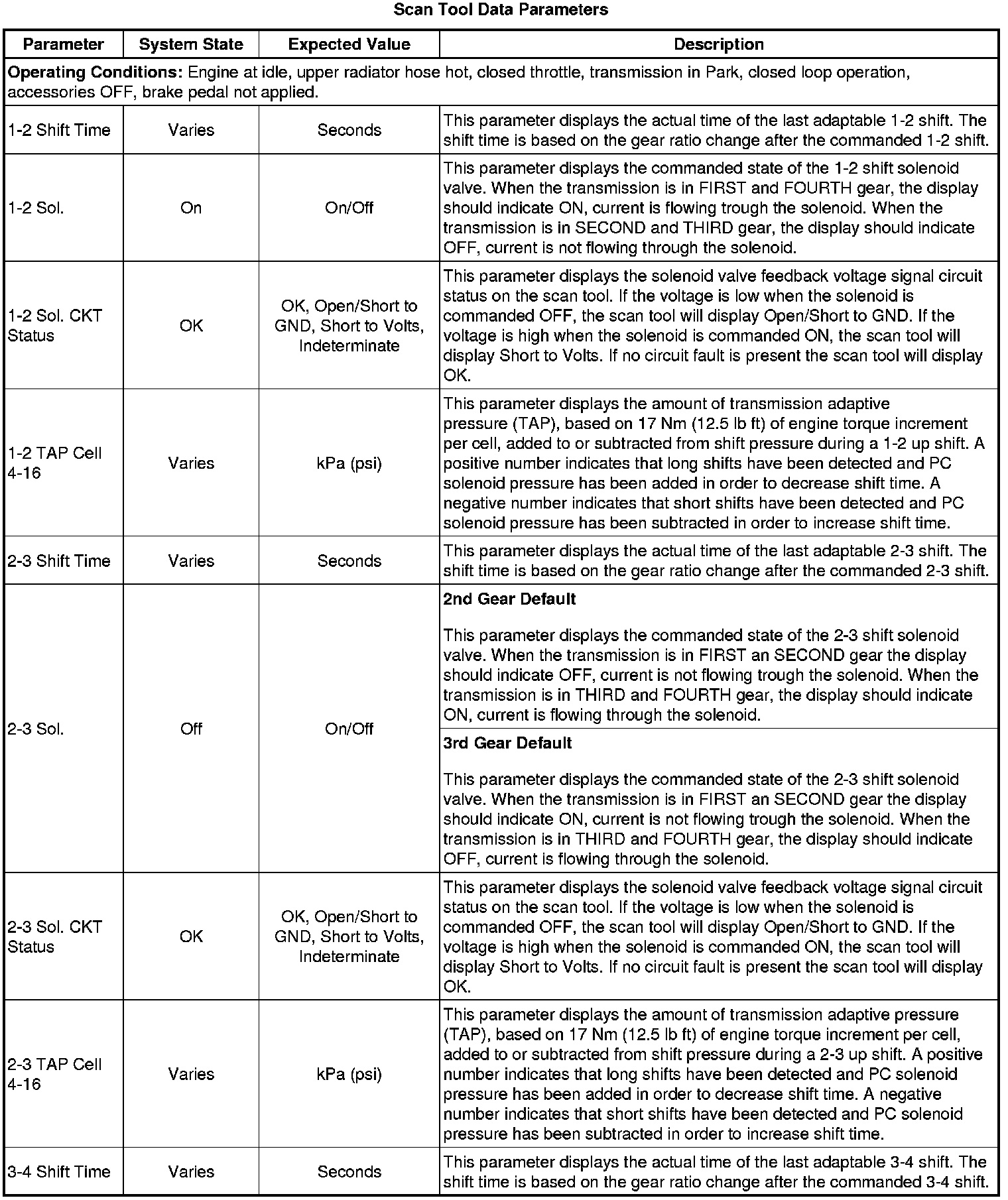The Transmission Control Module Scan Tool Data List contains all transmission related parameters that are available on the scan tool. The list is arranged in alphabetical order. A given parameter may appear in any one of the data lists, and in some cases may appear more than once, or in more than one data list in order to group certain related parameters together.