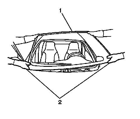 1. Install the windshield into the opening. Refer to Adhesive Installation of Stationary Windows (Rear Window) (Adhesive Installation of Stationary Windows (Rear Window))Adhesive Installation of Stationary Windows (Windshield) (Adhesive Installation of Stationary Windows (Windshield)).