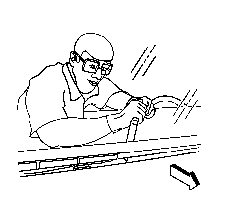 Note: Keep the cutting edge of the knife/tool against the window. Do this from inside the vehicle.